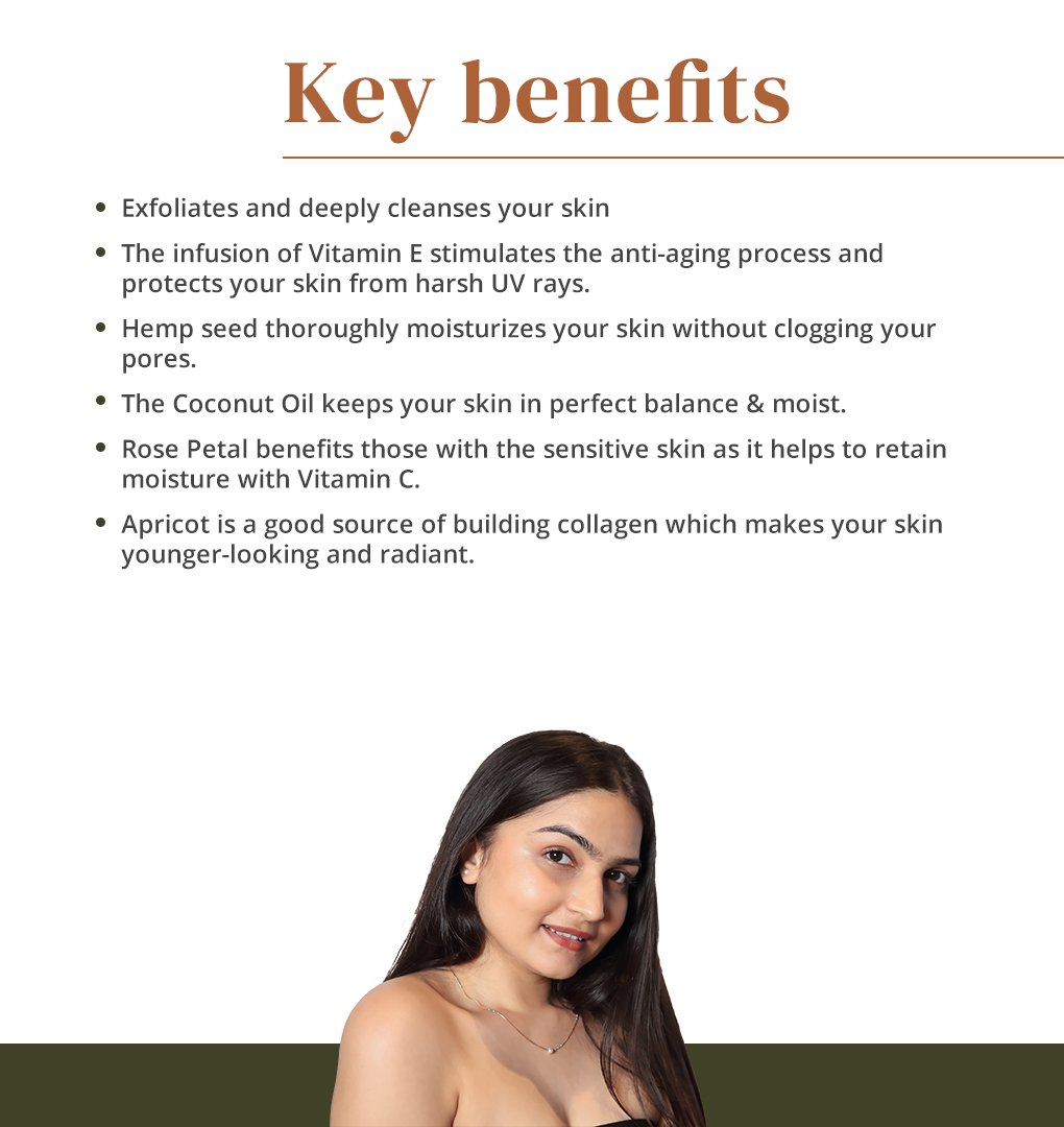 Purified Water, Stearic Acid, Glycerine, Walnut Scrub, Capryloyl/Caproyl Methyl Glucamide (and) Lauroyl/Myristoyl Methyl Glucamide, Cetyl Alcohol, Rose Water, Sunflower Oil, Cetearyl Olivate (and) Sorbitan Olivate, Glyceryl Monostearate, Hempseed Oil, Nia