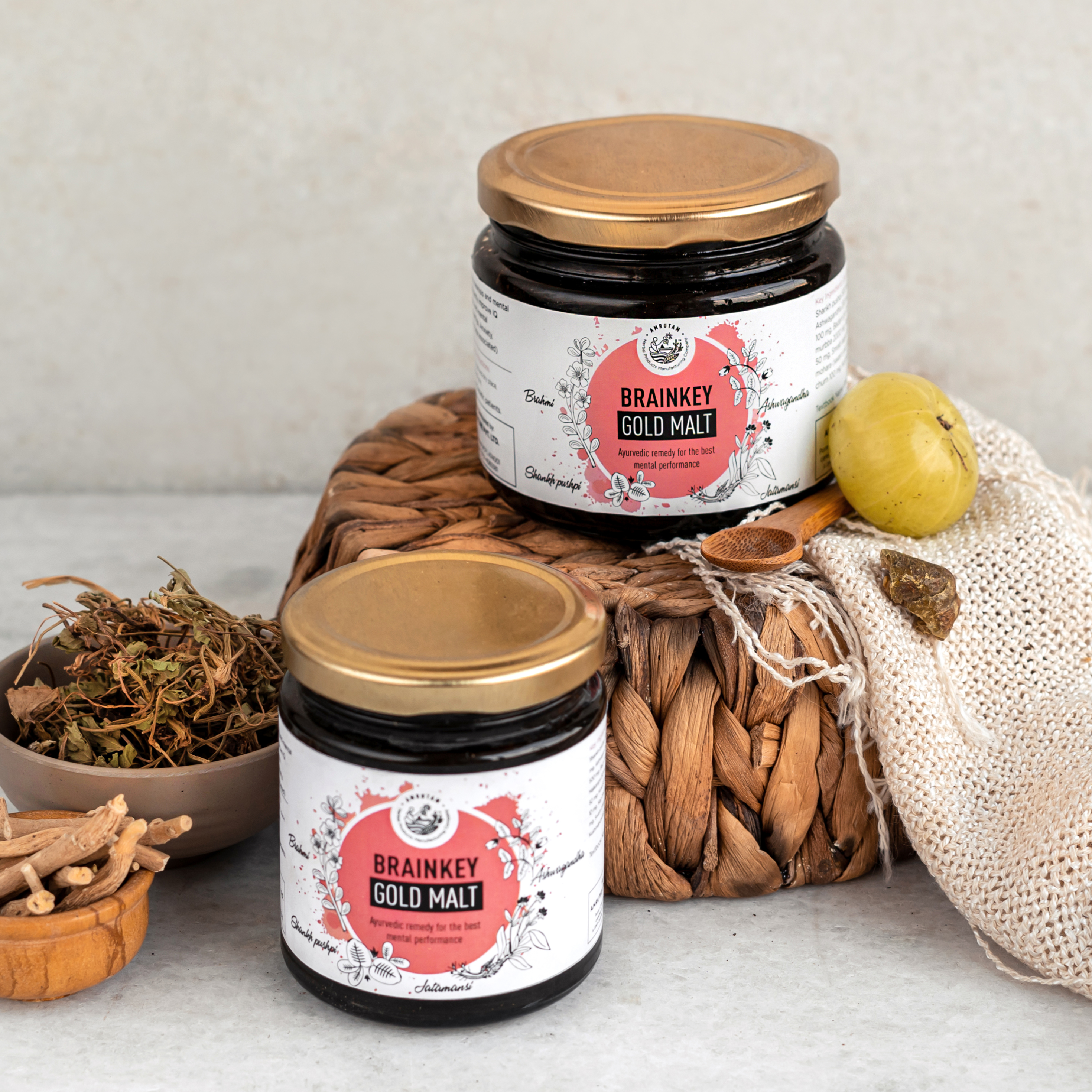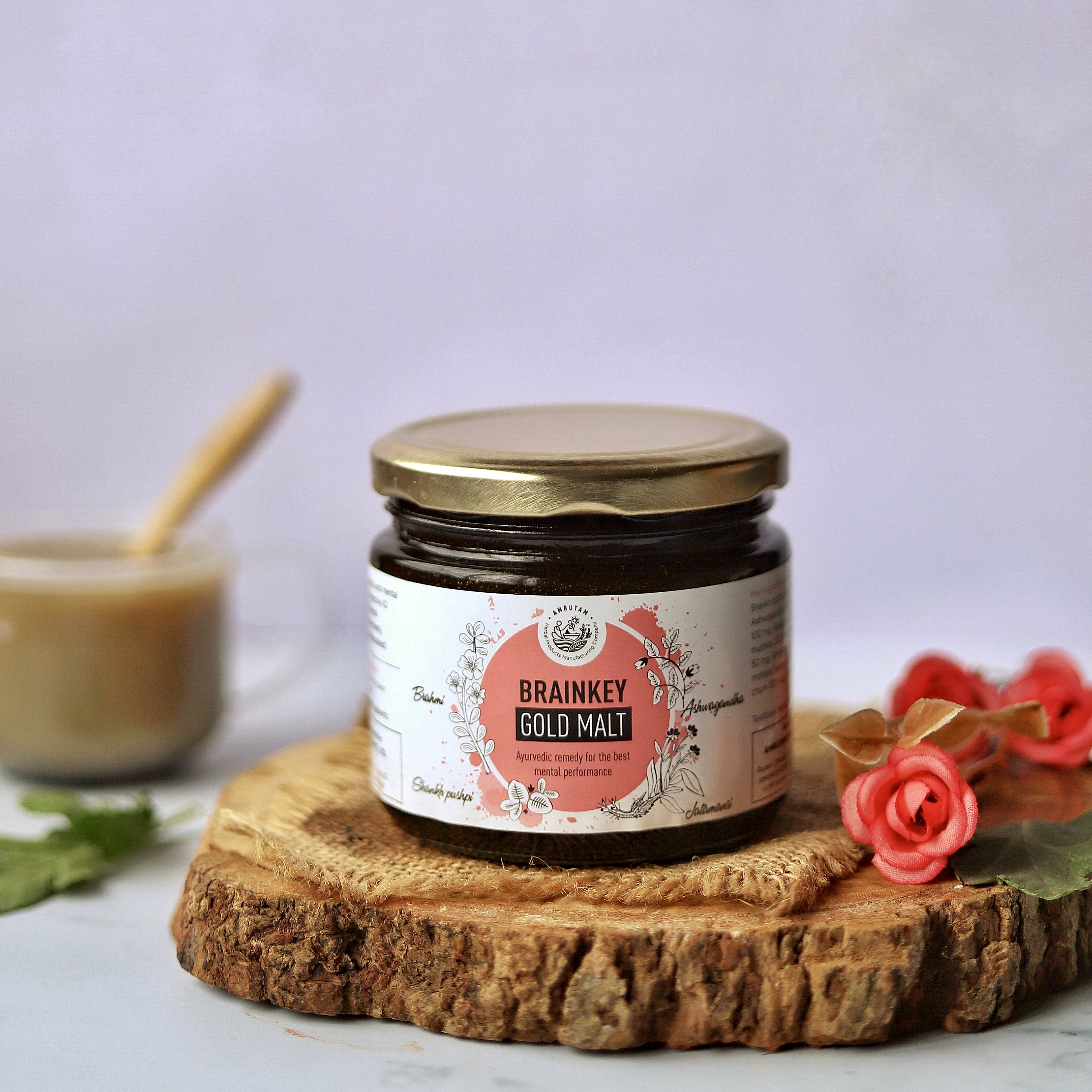 Brainkey Gold Malt contains Shankhpushpin, Brahmi, Jatamansi and Ashwagandha. It is an ancient traditional recipe that helps in increasing immunity and improving memory and concentration. This herbal jam for memory boosting also aids in helping you fight against mental damage and stress.