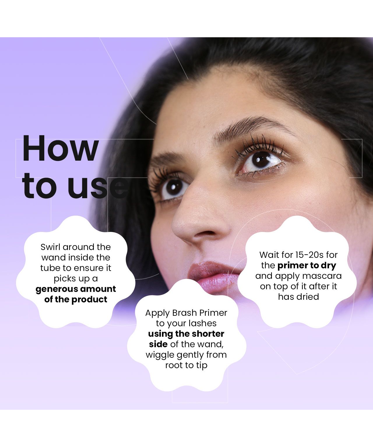 Brash primer is a base coat that goes on to your lashes before you apply mascara. Think about it as a formula that will prep your lashes - adding more length, volume, and hold so that your lashes look even more accentuated (if thats your style) when you layer on mascara.
