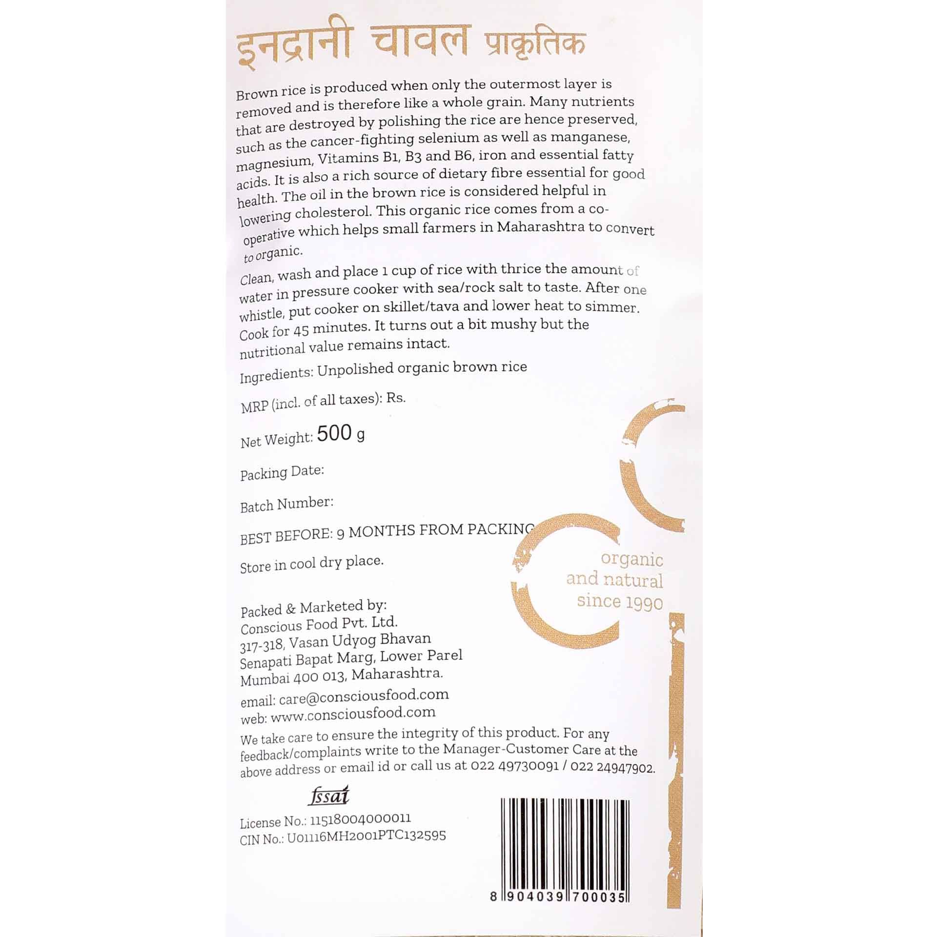 This long-grained, organic brown rice (Indrani) is specially sourced from a farming co-operative in Maharashtra. The co-op helps these small farmers to convert to organic farming which benefits them monetarily. Indrani has similar properties to Sikander such as it being fibrous and coming with the health benefits of whole grains which aid in digestion. It is a rich source of vitamins B1, B3 and B6 and minerals selenium, manganese, magnesium, and iron, some of which are good for heart health and maintaining cholesterol levels. The factor that differentiates Indrani from Sikander is that it is a slightly longer grained rice.