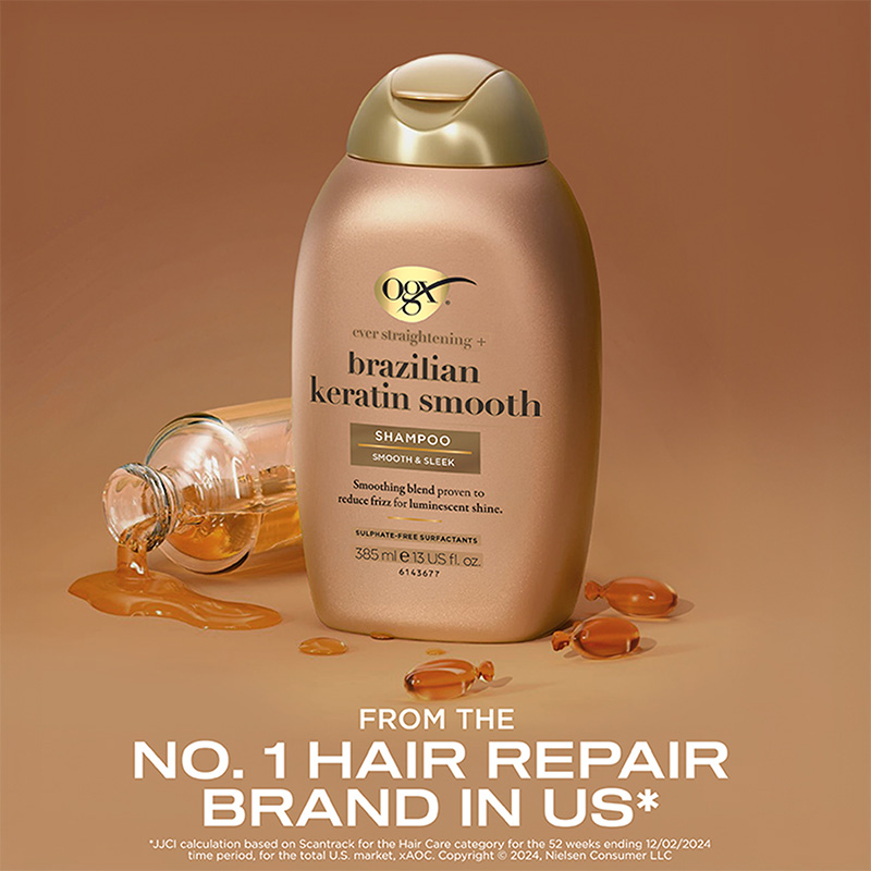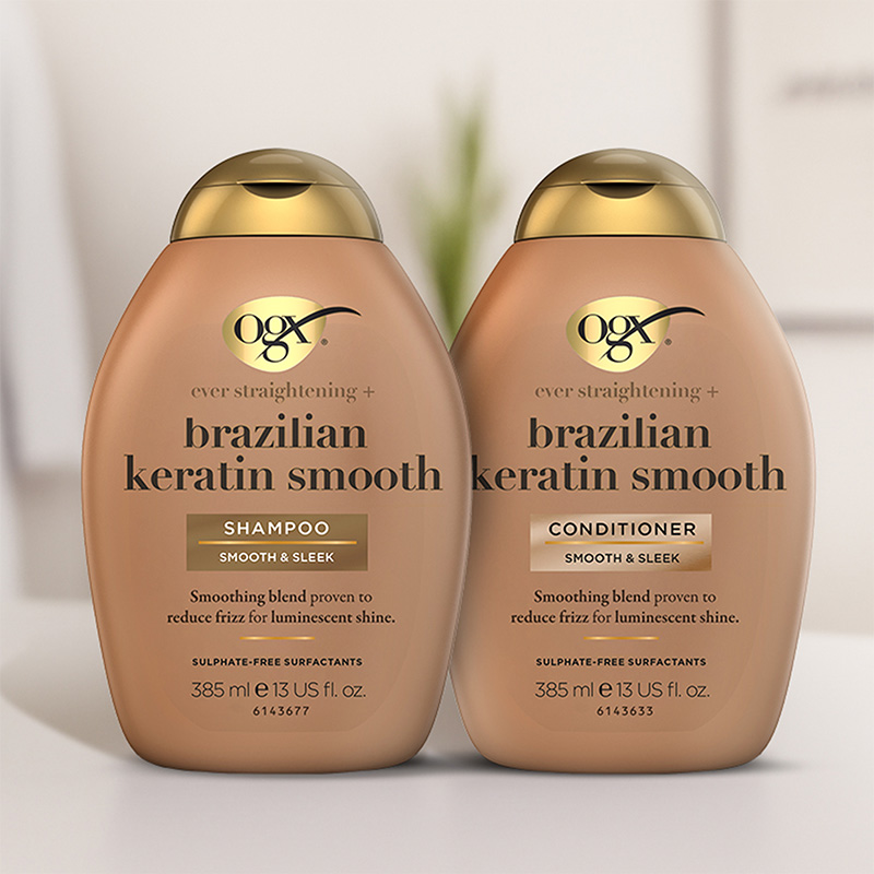 "SMOOTH HAIR THE WAY NATURE INTENDED: OGX Ever-Straightening + Brazilian Keratin Therapy Hair-Smoothing Shampoo hydrates strands, leaving them extra-glossy with a lustrous shineSOFTER, SILKIER, STRONGER: No matter the hair type, this nourishing keratin shampoo strengthens and softens hair while helping smooth the cuticle for strong, long tresses
