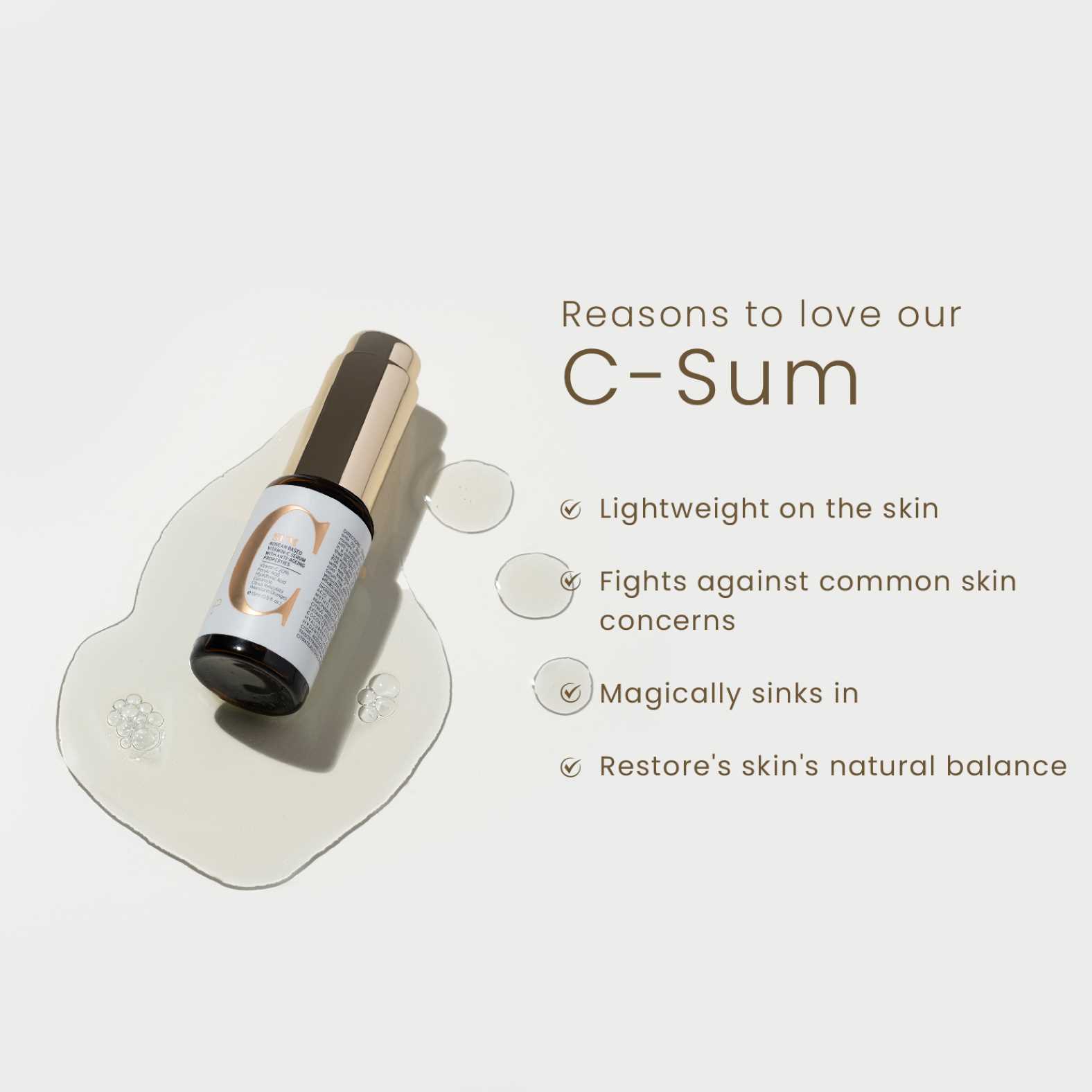 At the heart of C-Sum is its high concentration of vitamin C, a potent antioxidant that stimulates collagen production, brightens skin, and improves skin texture. But unlike other vitamin C serums on the market, C-Sum also contains Ceramide 3, which helps to protect the skin barrier from water loss and dehydration. Ferulic acid, another key ingredient, not only fights free radicals but also helps to prevent vitamin C from oxidizing, extending the shelf life of the product.