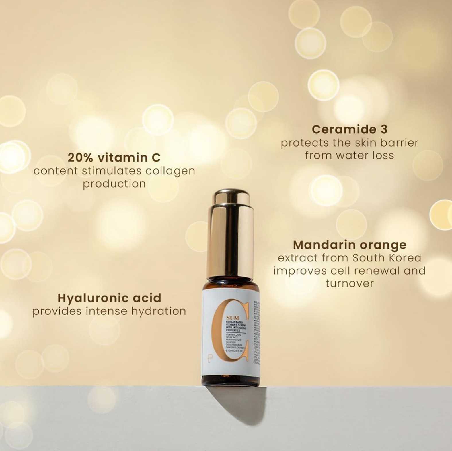 Introducing C-Sum, the groundbreaking vitamin C serum from Personal Touch Skincare that is taking the beauty world by storm. With a potent 20% vitamin C content, as proven in lab testings, C-Sum is the ultimate weapon against ageing, dark spots, hyperpigmentation, and other common skin concerns. But that's not all - this serum is packed with powerful ingredients that work together to deliver unprecedented results.