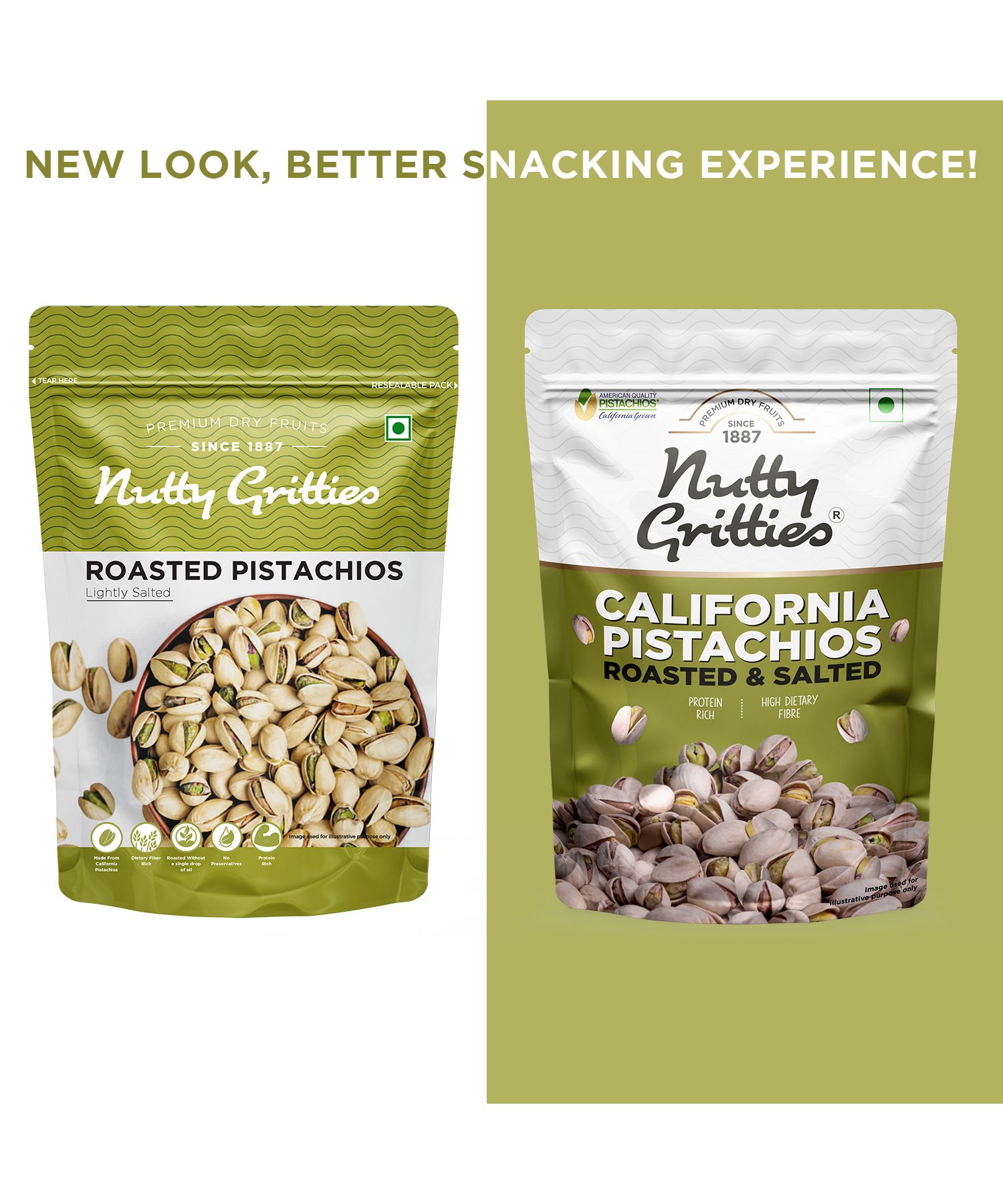 "Californian Pistachios which we dry-roast without a single drop of oil and lightly salt.Taste- Fresh, Crunchy, and lightly salted.