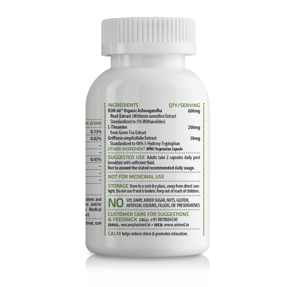 Stress is a feeling of emotional or physical tension. It is your body's reaction to a challenge or demand. In the short term, these reactions are good but when you have chronic stress, over time, this puts your health at risk.CALM is a plant-based formulation comprising of adaptogenic, neuroprotective and cognitive-enhancing extracts which help maintain normal levels of hormones responsible for inducing stress, anxiety and negative effects on mood.