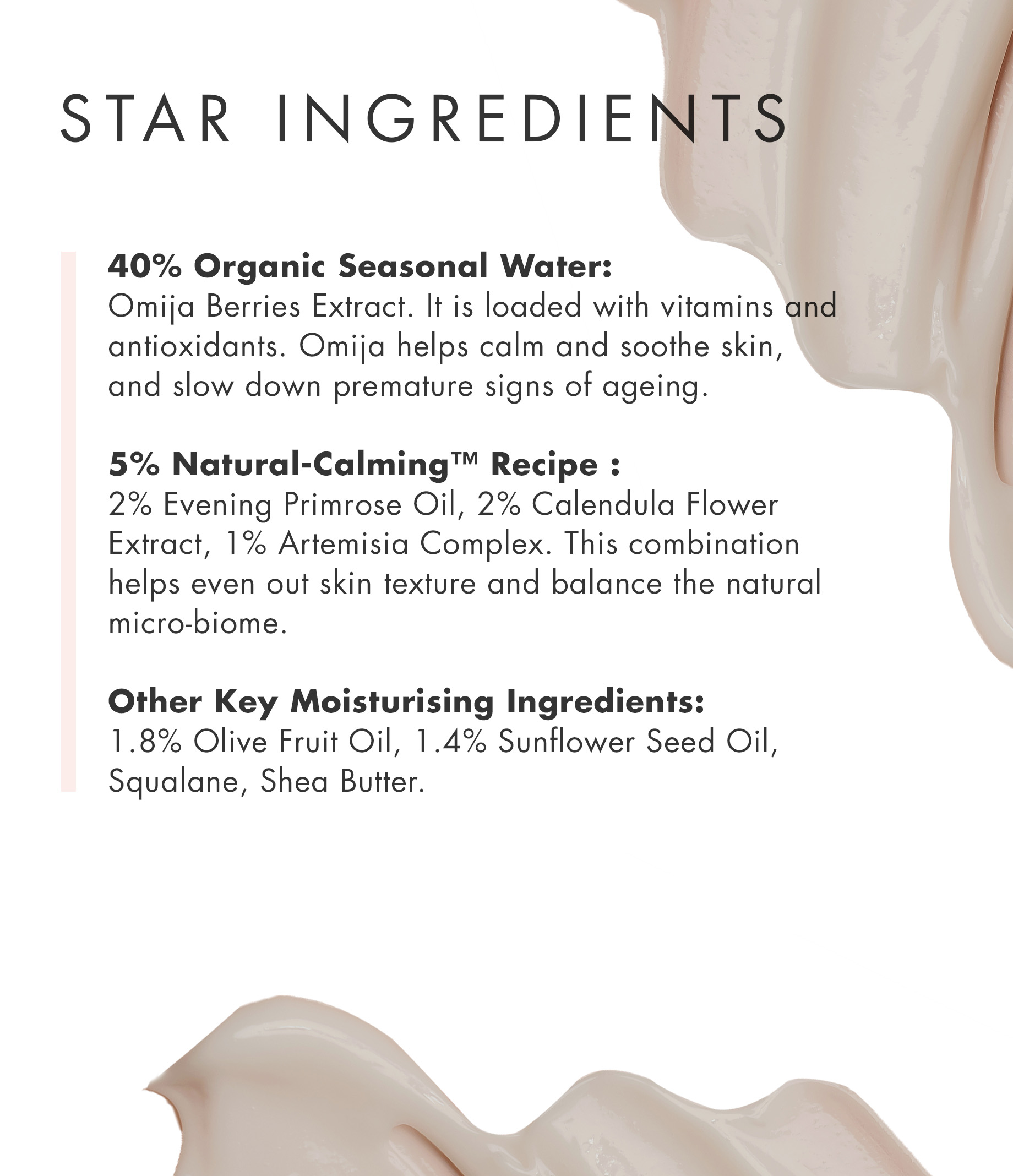 A lightweight hydrating moisturiser that uses the Omija fruit to strengthen the skin barrier. With 27.5% organic ingredients harvested at their peak, the soft, silky textured cream helps moisturise and hydrate deeply. It uses Natural-Calming Recipe to even out skin texture and balance the natural micro-biome of the skin. It also uses botanical oils which are lighter on your skin and allow the cream to spread well.