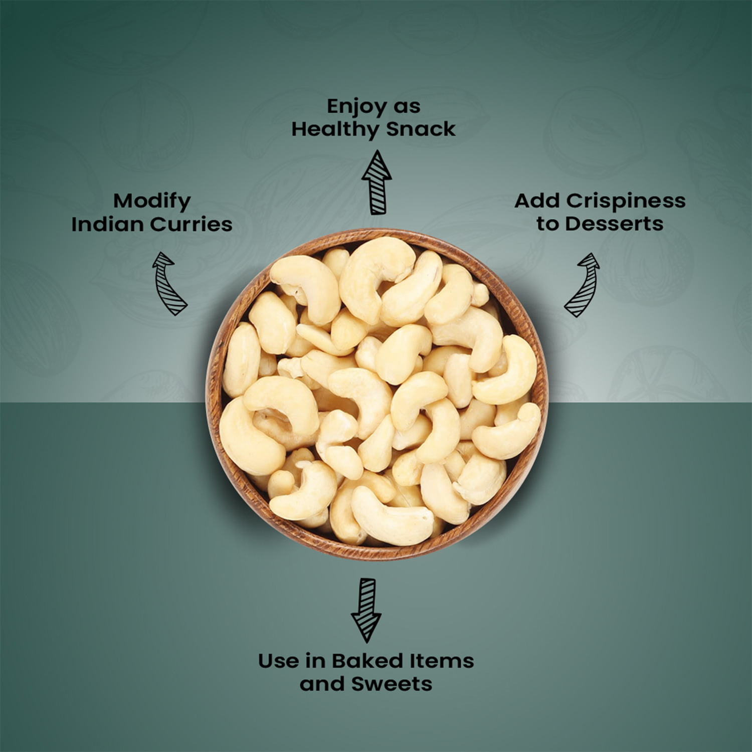Nutraj Cashew are delicious and ready to be eaten straight out of bag and are exceptionally good to be used for cooking and bakery purposes. These sweet and buttery cashew nuts from nutraj are rich in antioxidant, protein and dietary fiber. A considerable amount of cashews in your diet may avoid the risk of heart diseases. Cashews are known to contain a powerful antioxidant pigment called Zea Xanthin that may help protect your eyes from harmful UV rays and help maintain eye health. Mix these cashew nuts with granolas or smoothies for a healthy treat or toss them in yogurt and other dishes.