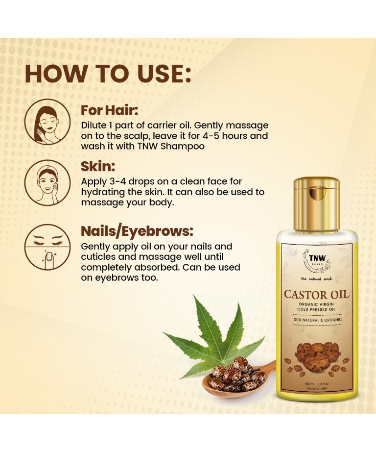 TNW Castor Oil is a virgin oil extracted from handpicked castor seeds. It is obtained with cold pressing technique, which makes it pure and ready to use. This castor oil is enriched with omega 6, a fatty acid that improves blood circulation, ensuring hair growth. It can be used by both men and women as it is made naturally and organically with pure ingredients. This cold pressed castor oil will boost your skin health, nails, and cuticles. The fatty acid in castor oil keeps your skin moisturized and youthful. You can use TNW Castor oil to add volume to your eyebrows and eyelashes.