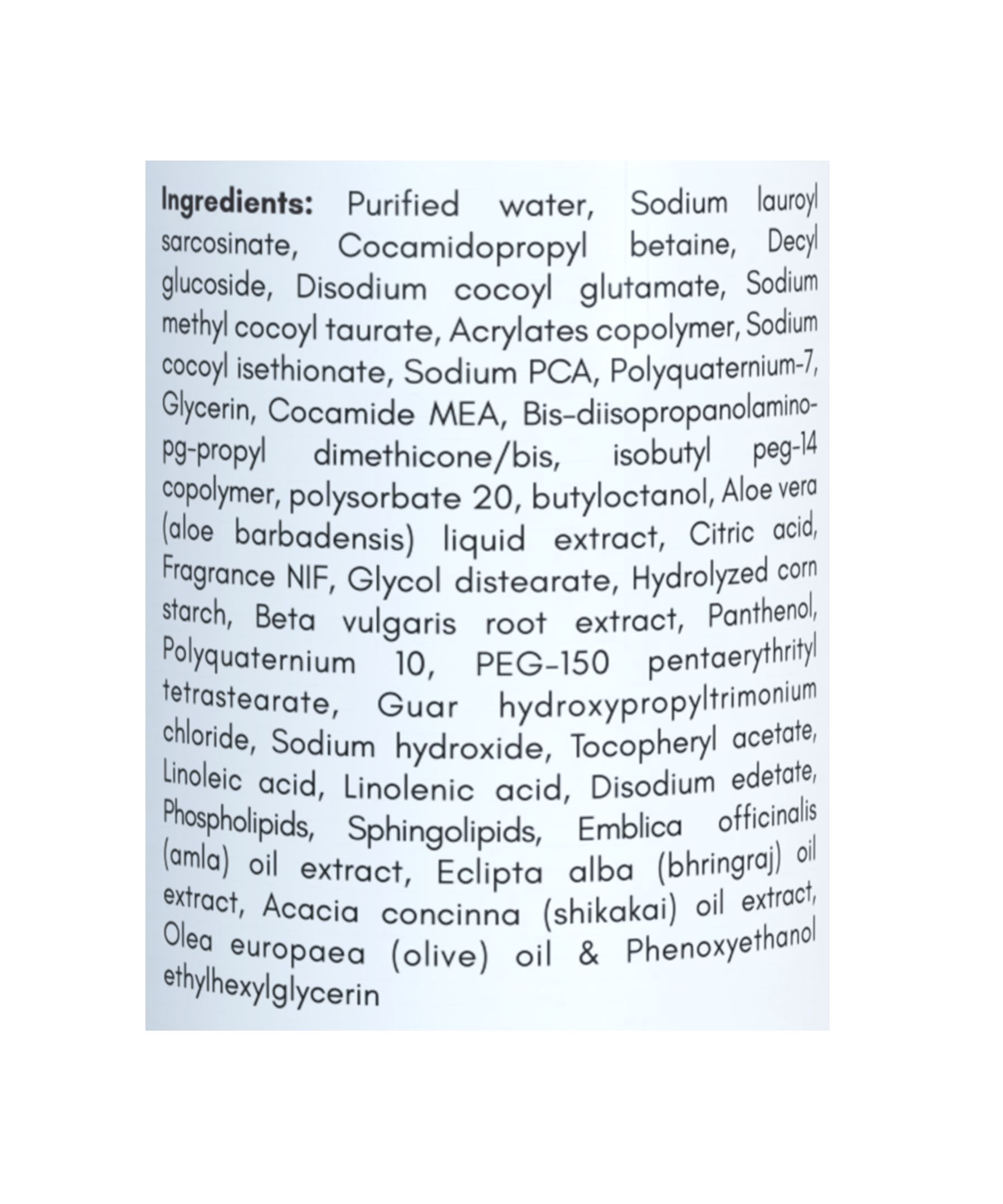 - Ceramides (Phospholipids, Sphingolipids), Vitamin B5 (Panthenol, Bhringraj