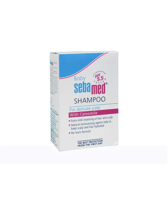 Sebamed children's shampoo has pH of 5.5 and has sugar based mild cleanser. Other children shampoos have pH>7 and chemicals like formaldehyde, phthalates, SLS which leads to allergic reactions. At pH 5.5 alone the scalp barrier remains intact. It has been clinically proven that only at pH 5.5, scalp is hydrated and strengthens scalp for optimal hair growth. Lipid and moisture loss is minimum and the growth of Malassezia which leads to dandruff is restricted. Sebamed children's shampoo is free from irritants and hence has 0% incidences of irritant reactions. Sebamed children's shampoo contains botanical ingredient, hence the reported incidence of allergic reaction is 0.000003%.Only at pH5.5 the baby's delicate eyes are not irritated and the tear free formula is free from formaldehyde. Sebamed children's shampoo is ideal for cradle cap, seborrheic dermatitis and dandruff. 100% soap and alkali-free. Especially mild cleansers for gentle cleansing without irritating the scalp or hair. Herbal extract of chamomile alleviates irritation and soothes the skin. Special no tears formula does not sting in the eyes. Leaves hair fragrant and silky. Pleasant botanical fragrance. Ideal from six month onwards. Clinically proven Suitability for cleansing of hair and scalp in babies and infants with sensitive scalp was proven in the dermatological study. Users documented an excellent acceptance of the shampoo and 93 % were willing to continue using it.