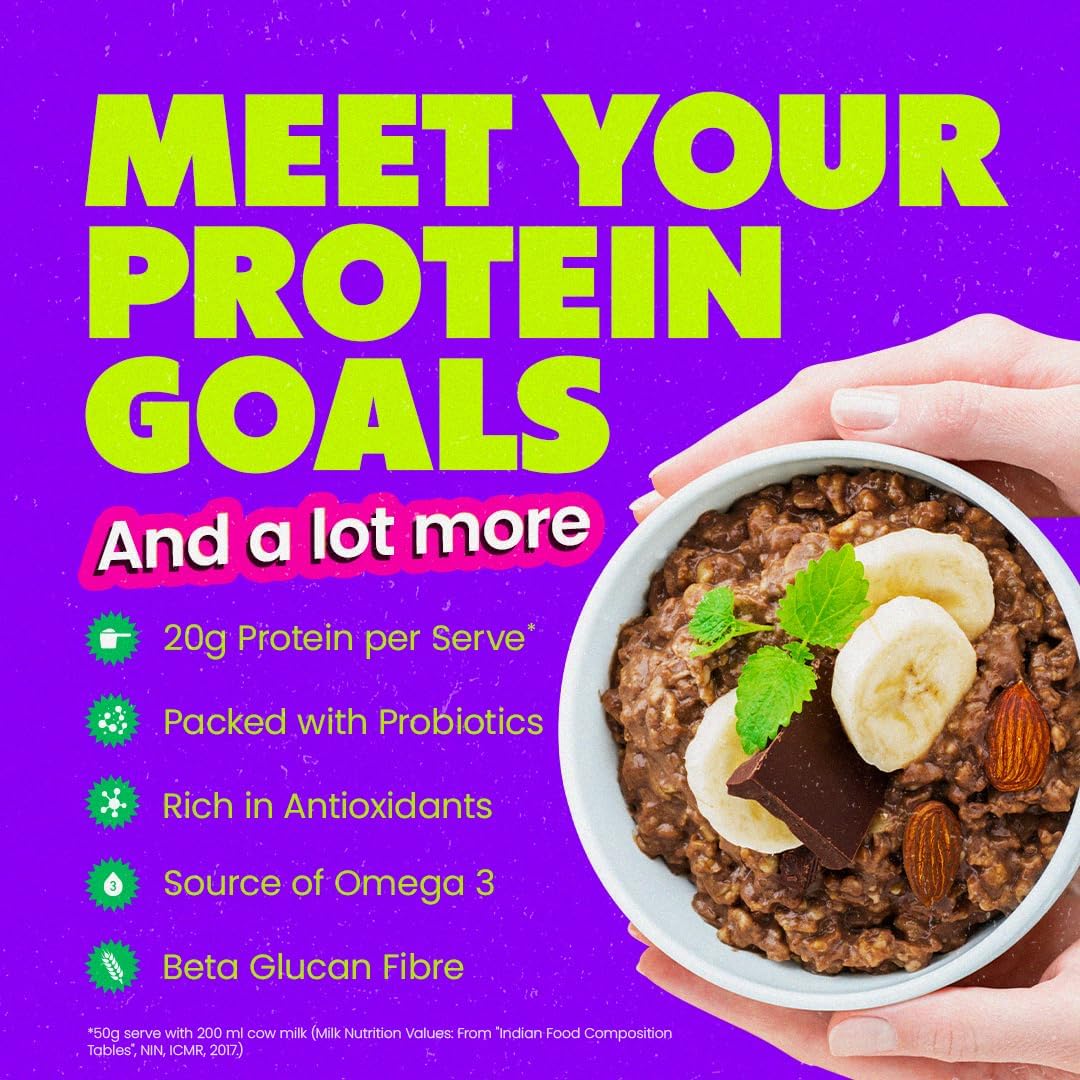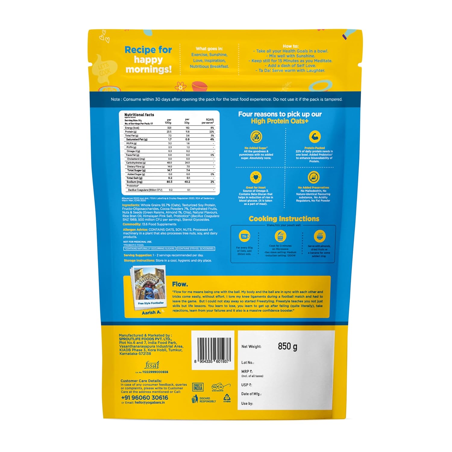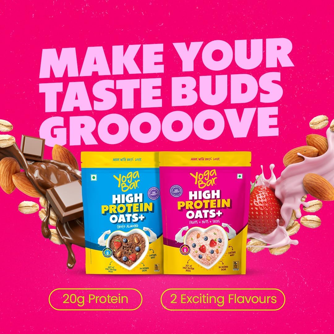 Yogabar Protein Oats|Dark Chocolate & Almonds High Protein Oats 850gm |23gm Protein|Complete Protein Blend Whey+Soy|With Probiotics for Better Absorption|Fiber-Rich|Helps in Weight Management