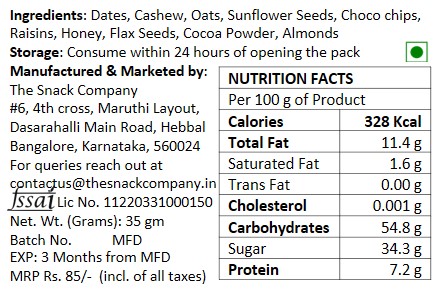 The Snack Company Choco Nut Energy Bar -35gm - Pack of 3