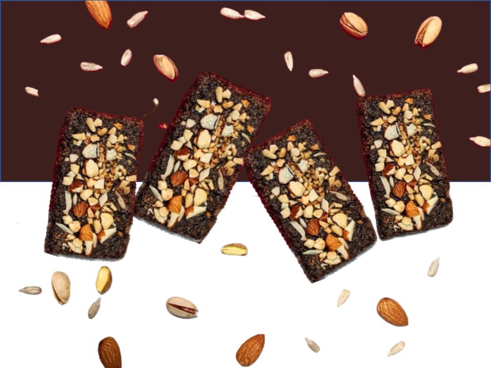 Loaded with nuts and seeds, infused with an Indian rose "gulkand" flavor, this quick and handy energy bar, can be consumed at anytime of the day, as an energy booster. This clean and artisanal product comes with no added sugars, artificial flavors, preservatives, additives and trans fat. Store in a cool and dry place, away from heat or sunlight. Allergen advice: This product contains oats and nuts.