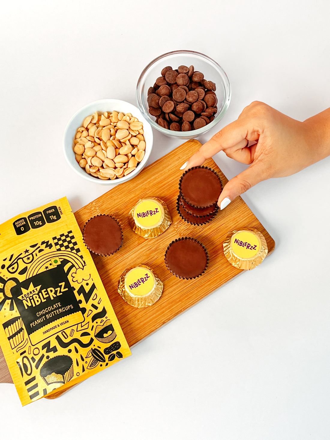 Bye Bye Sugar, Hello Candy! Chocolate Peanut Butter Cups with zero processed sugar, packed with protein and fiber. The perfect snack is here. A 90 gm pack with 6 PBC. Now you can #nibleguiltfree.