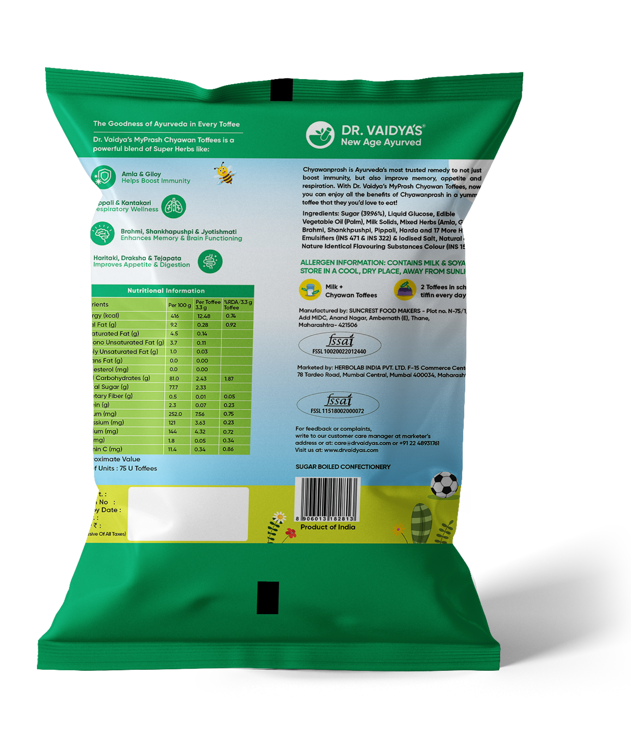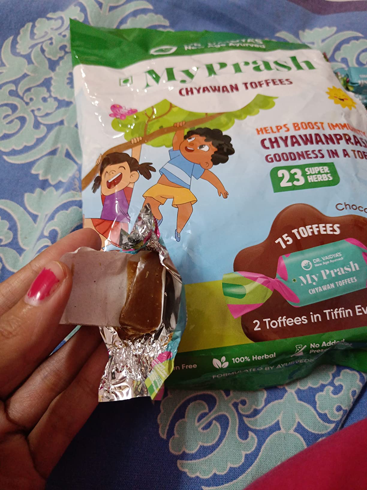 "Chyawan Toffees allow kids to enjoy the goodness of Chyawanprash in a simple and tasty form. Every toffee contains 23 super herbs from Chyawanprash. These include Amla, Pippali, Brahmi, Giloy, Kantakari, Draksha, Jyotishmati, Tejapata, and Shankhapushpi. Most kids dont enjoy the strong taste of Chyawanprash. Chyawan Toffees is an innovative product that provides mothers with a way to give their kids the time-tested and proven benefits of Chyawanprash ingredients, in a chocolate-flavoured toffee. The benefits of Chyawan Toffees also help strengthen your childs immunity. These chocolate-flavoured toffees also help improve memory, brain function, digestion, and respiratory health in children. Now that kids are back at school, you can add 2 Chyawan Toffees to their tiffin or let them enjoy 2 toffees every morning with a glass of warm milk. But kids arent the only ones who can enjoy the goodness of Chyawanprash in toffee form. You too can relive your childhood with these healthy and tasty Chyawan toffees."