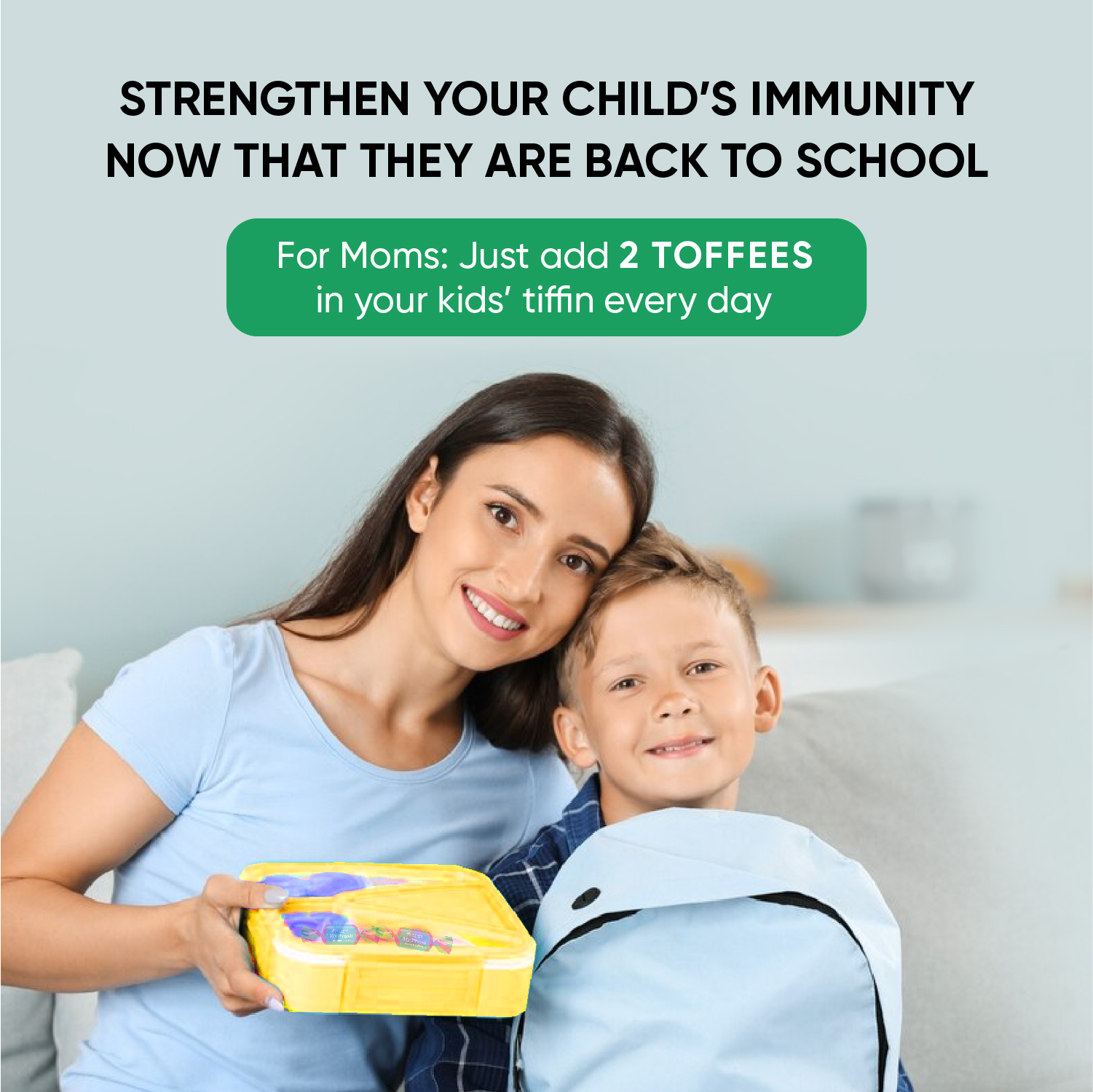Add 2 Chyawan Toffees to your child’s school tiffin or give 2 toffees with warm milk every morning.