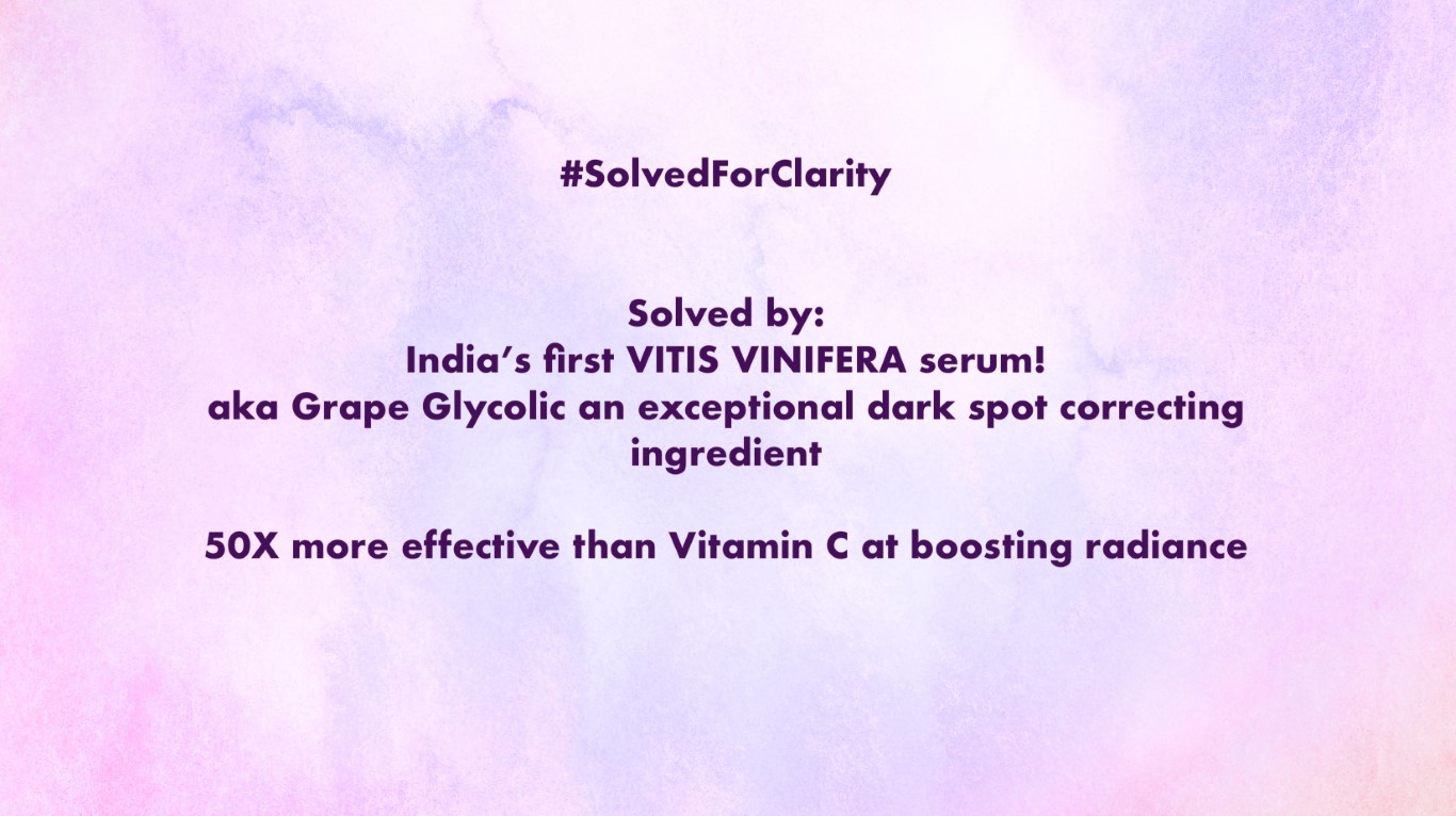 Never has anyone wished for a magic fix to their problems than while dealing with pesky acne scars, dark spots and discolouration. While magic may or may not be real, Clarity Drops is as close it as it gets. This is an efficient, multitasking formulation comprising of Vitis Vinifera aka Grape Glycolic Acid an exceptional spot correcting ingredient, Kojic Acid a brightening and hyperpigmentation-tackling powerhouse, Alpha Arbutin a dullness and free radical fighting superhero and Olive Squalane known for its moisturising and soothing goodness. Clarity Drops is designed to deliver while being gentle on your skin. All your spotty woes? #ConsiderItSolved