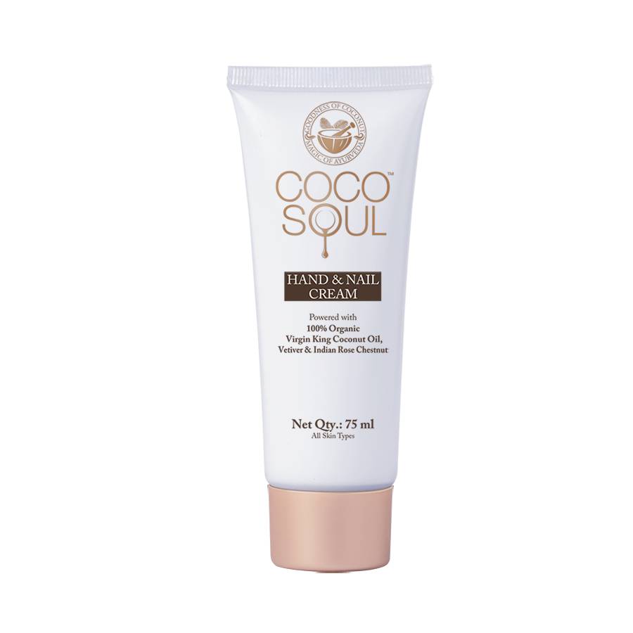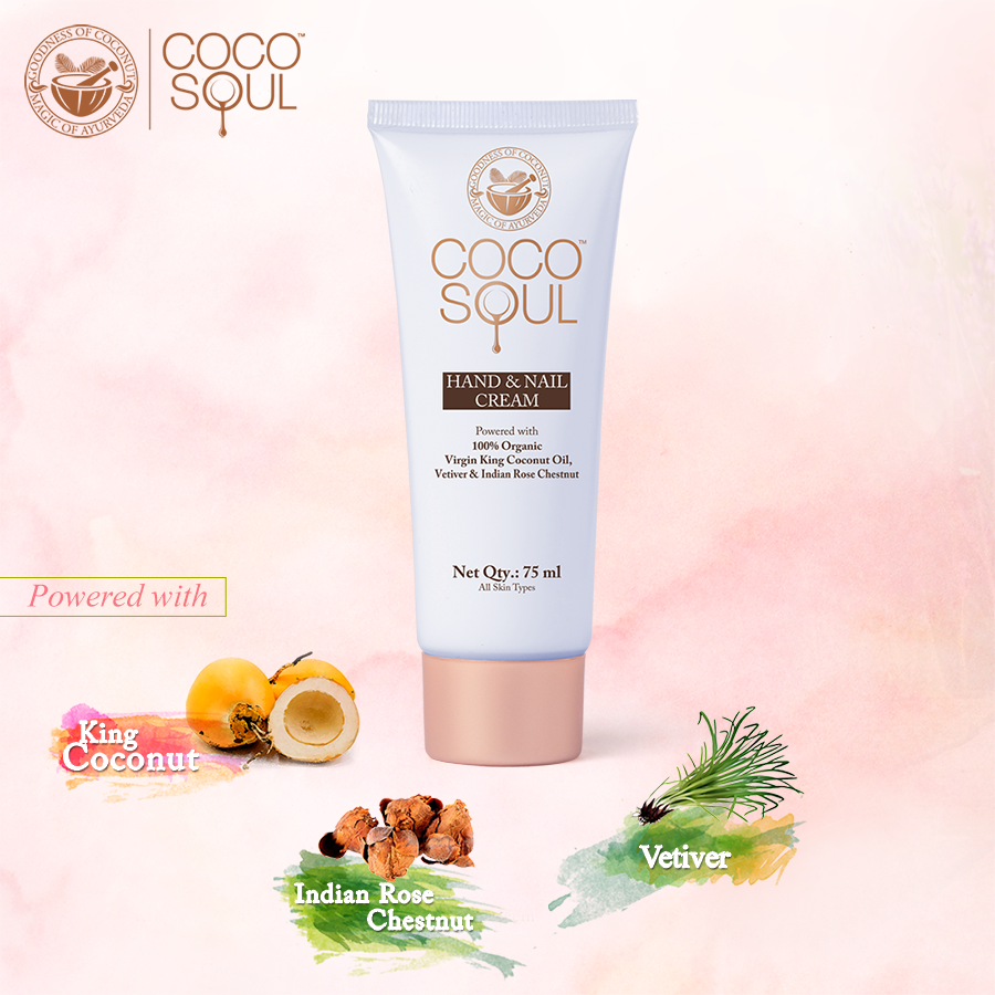 Coco Soul Hand Cream is powered with 100% Organic Virgin King Coconut Oil, Vetiver and Indian Rose Chestnut. Virgin King Coconut oil promotes cellular repair and penetrates 10 layers deep into the skin to restore lost moisture and keeps your hands intensely nourished. Vetiver with its anti-bacterial properties reduces dark spots and gives you a balanced skin tone. Indian Rose chestnut reverses sun tanning and improves the skin brightness giving you a radiant skin tone. This product is free from Sulphates, Parabens, Mineral Oil, Silicones, Phthalates, Formaldehyde, DEA, Propylene Glycol, Petrolatum etc.