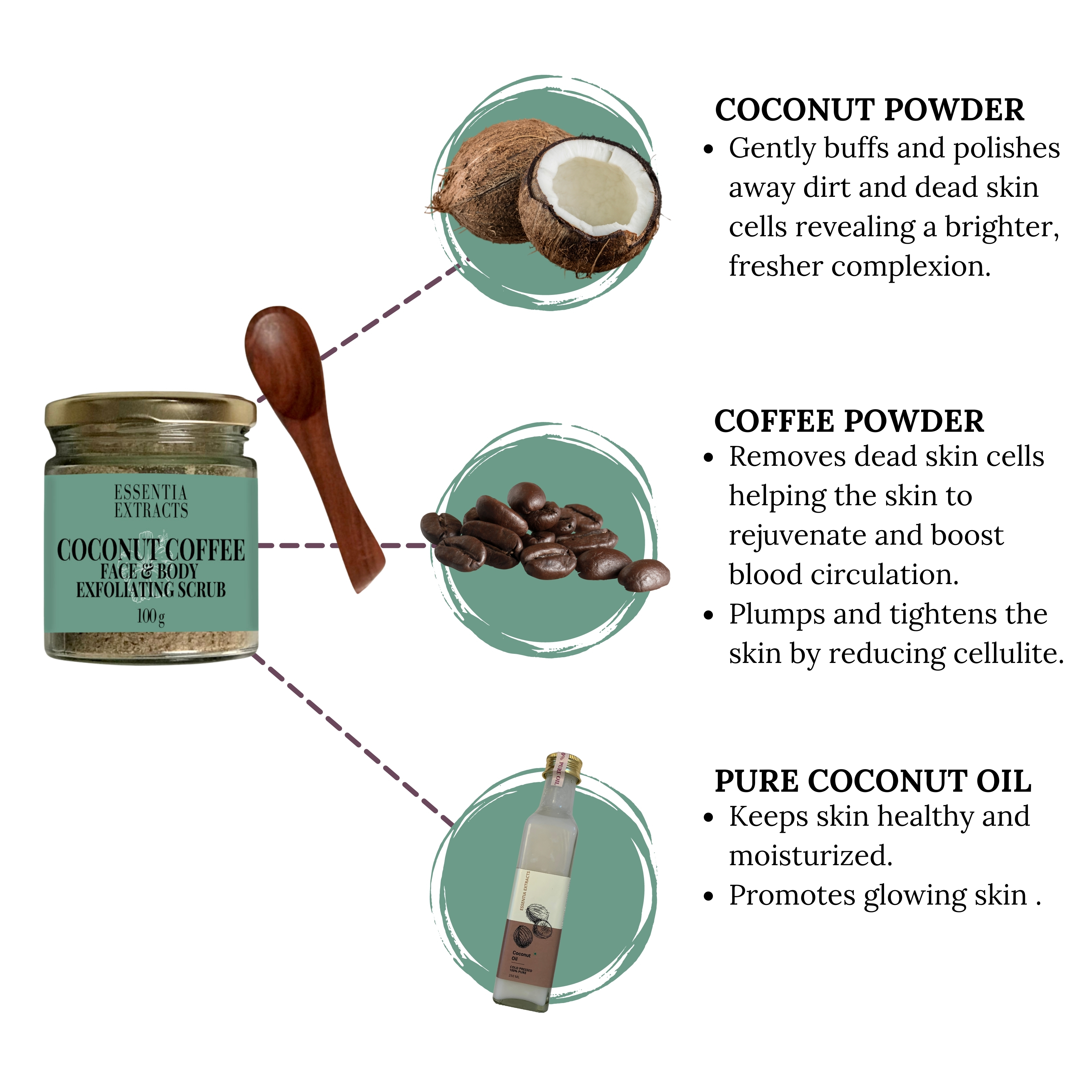 This product is crafted from the mix of best Robusta & Arabica Coffee and Coconut powder & Cold Pressed Coconut Oil. It exfoliates dead skin cells and helps get rid of blackheads, tan and impurities. It polishes the skin and deep cleanses your pores so that your skin is smooth, glowing and breathes free.