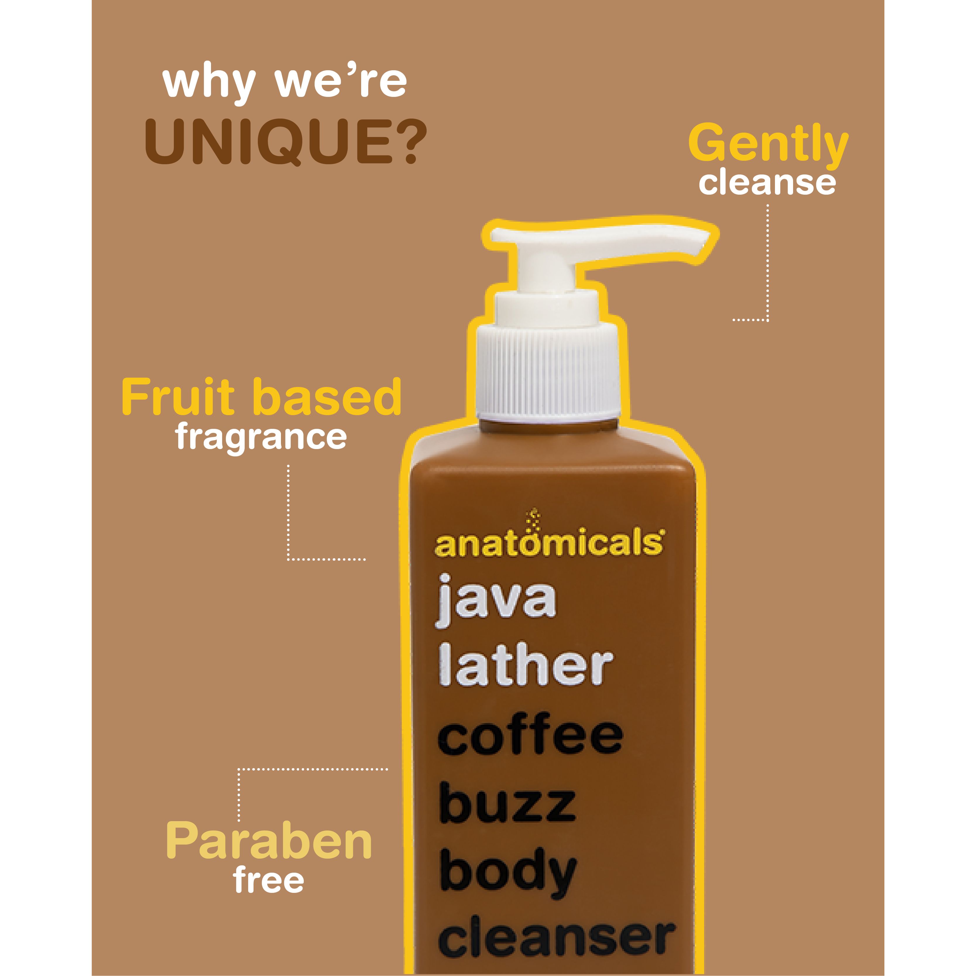 Introducing the Coffee Buzz Body Cleanser from Anatomicals, a luxurious and invigorating shower gel designed to deeply cleanse the body while leaving the skin irresistibly smooth. This unique formula harnesses the power of coffee to effectively eliminate impurities, providing a rejuvenating cleansing experience.