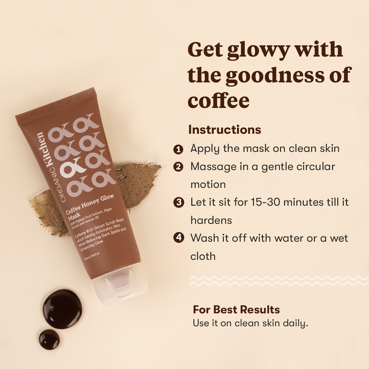 Coffee and its exfoliating properties are wel-known to all of us. This Coffee Honey Glow Face Mask brings the best acne-treatment and reduction in aging signs. This face mask aids in great skin exfoliation and leaves your skin cleansed and clear. This lightweight coffee mask improves blood circulation and brightens the skin while remove excess oil from your skin and gives a cooling sensation.