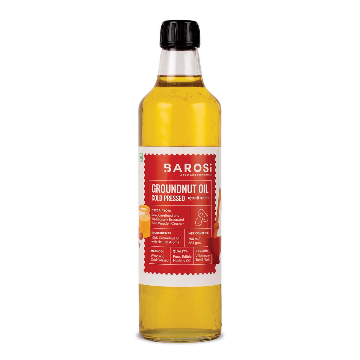 Groundnut Oil is produced at Tamil Nadu from the finest grade of groundnuts, and cold pressed to perfection using traditional methods, to retain its nutrient value and flavour