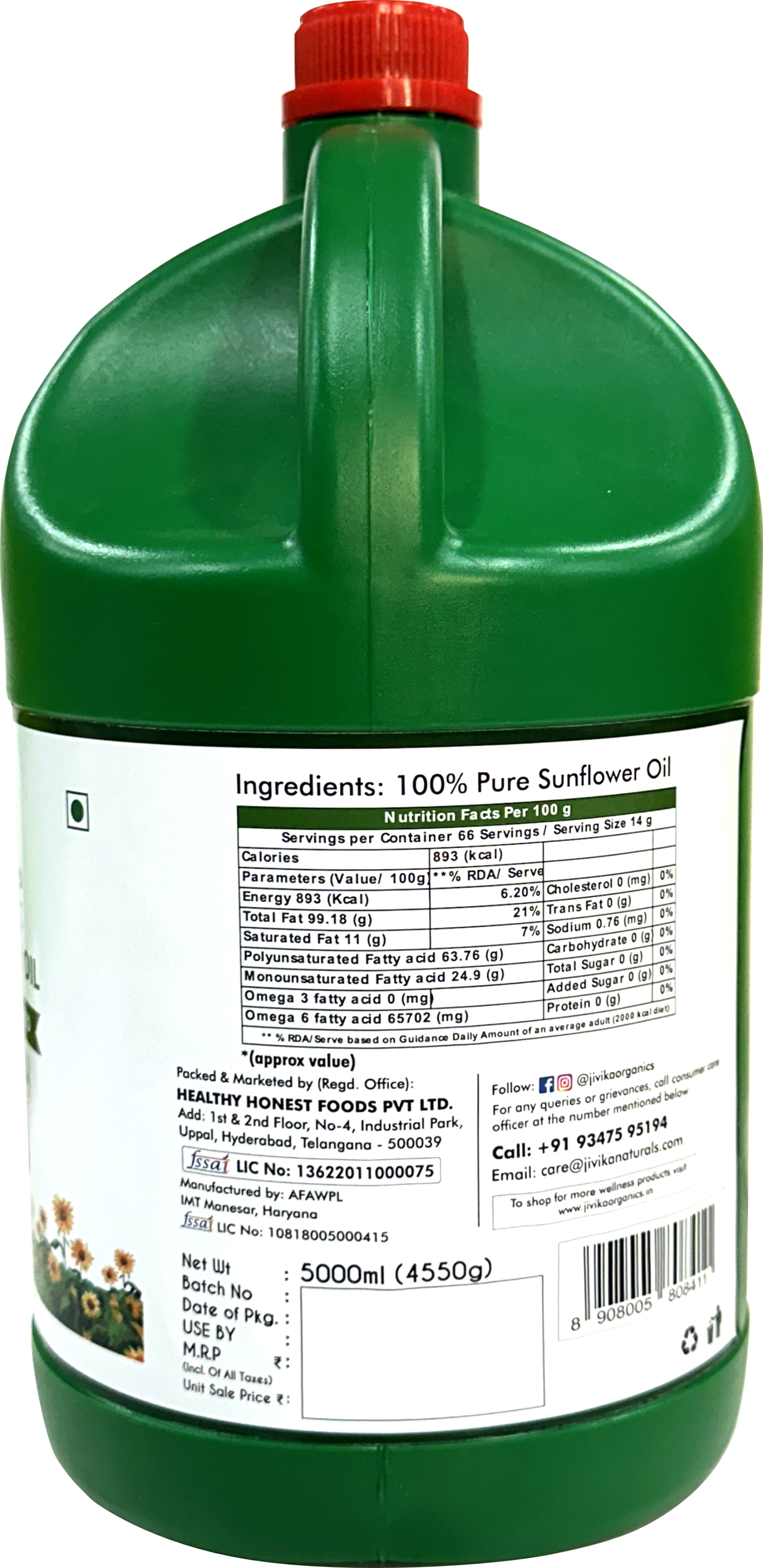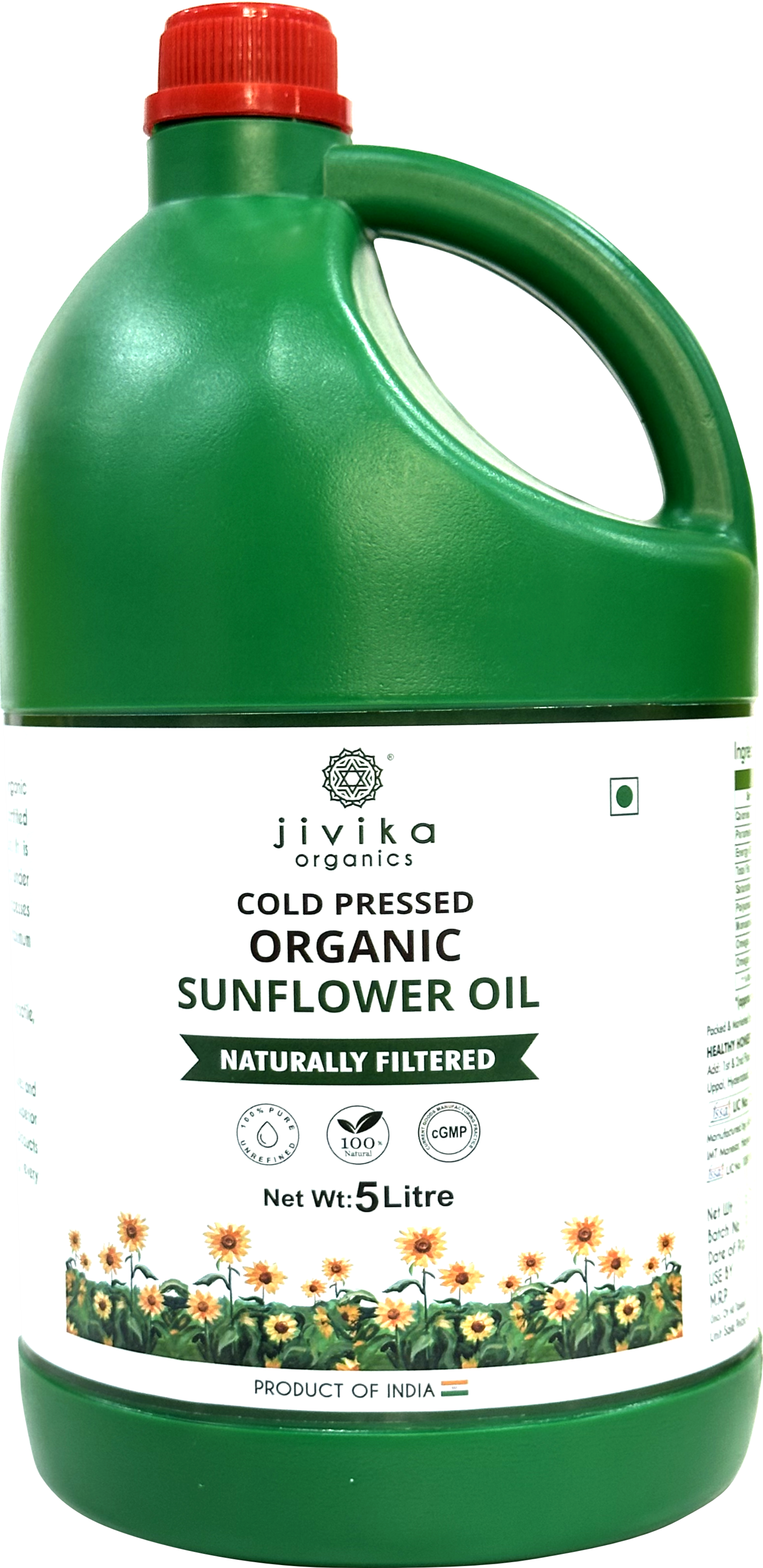 Jivika Naturals Organic Sunflower Oil is 100% Pure, Organic, and Nutritious making it one of the best options for your kitchen.