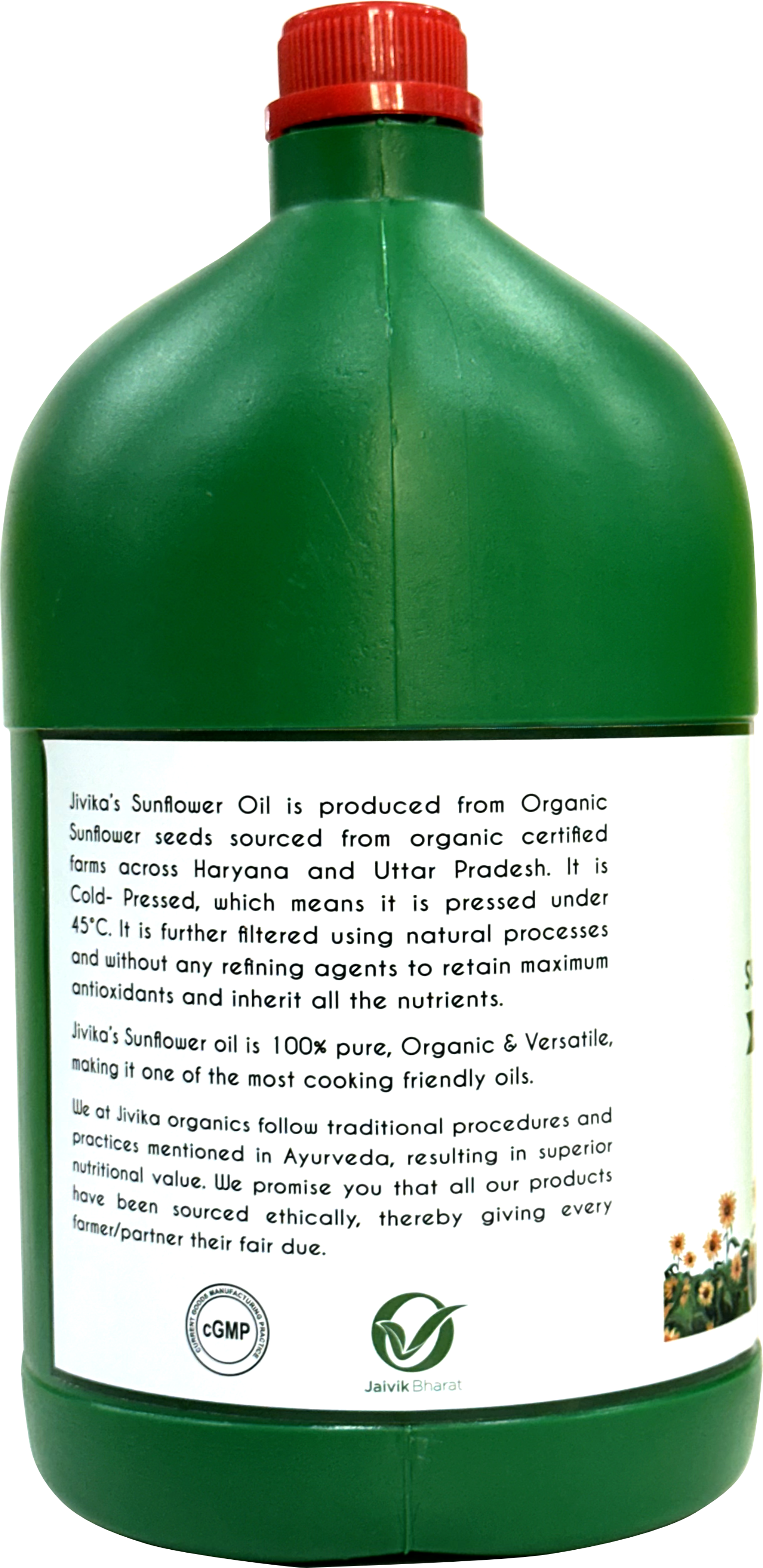 Jivika Naturals Sunflower Oil is pressed from the best sunflower seeds, sourced from certified organic farms across Haryana and Uttar Pradesh.