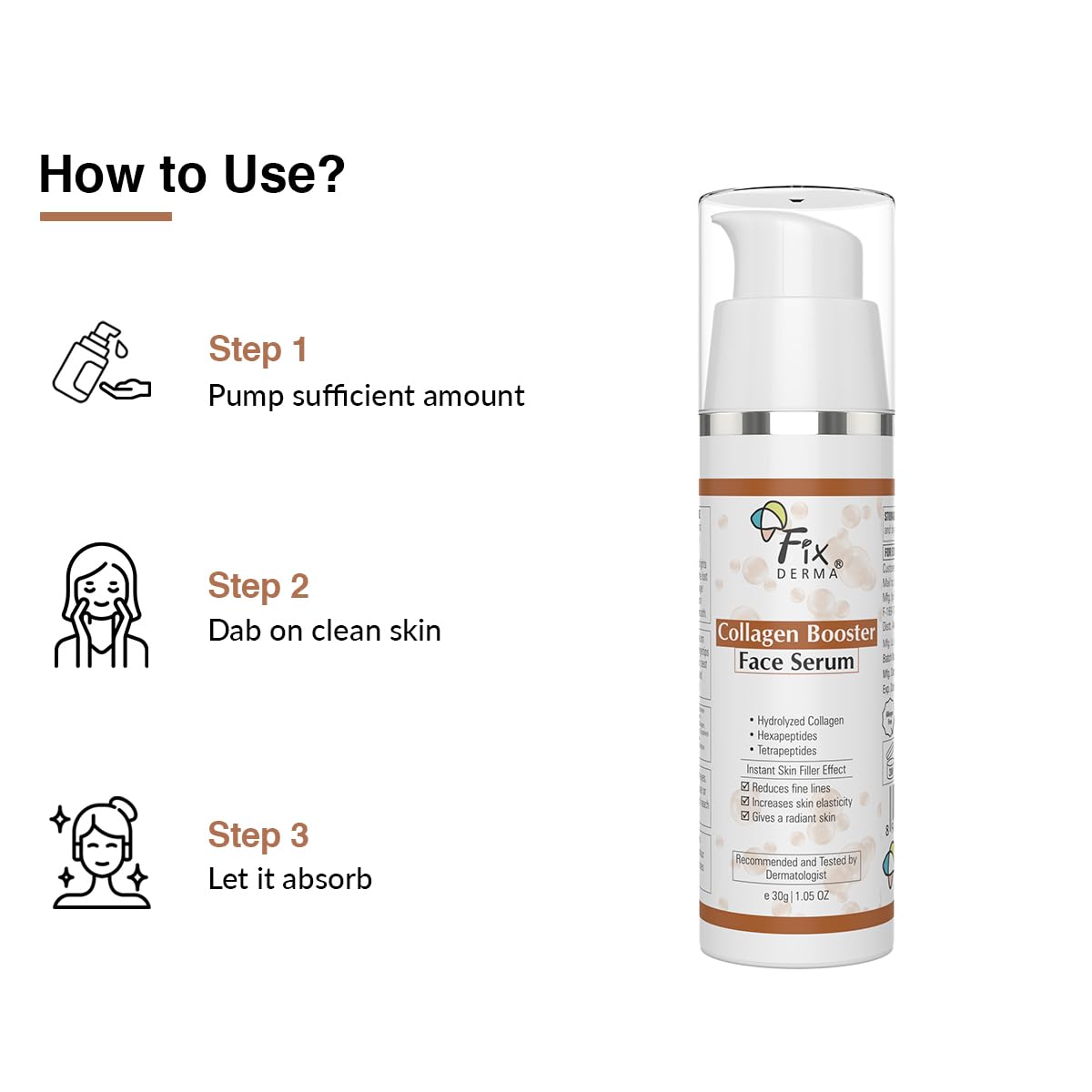 Instant skin filler effect- collagen booster face serum imparts an instant skin filler effect, i.e. It lifts up your skin, making it look plump, smooth, moisturized and healthy. Reduces fine lines & wrinkles- infused with hydrolyzed collagen and peptides, this potent serum restructures the skin and stimulates the production of collagen.Improves skin elasticity- enriched with ingredients that work together to hydrate, firm, and plump the skin, reducing the appearance of fine lines and wrinkles and improving skin elasticity. Regular use of such a serum can lead to a more youthful, glowing complexion