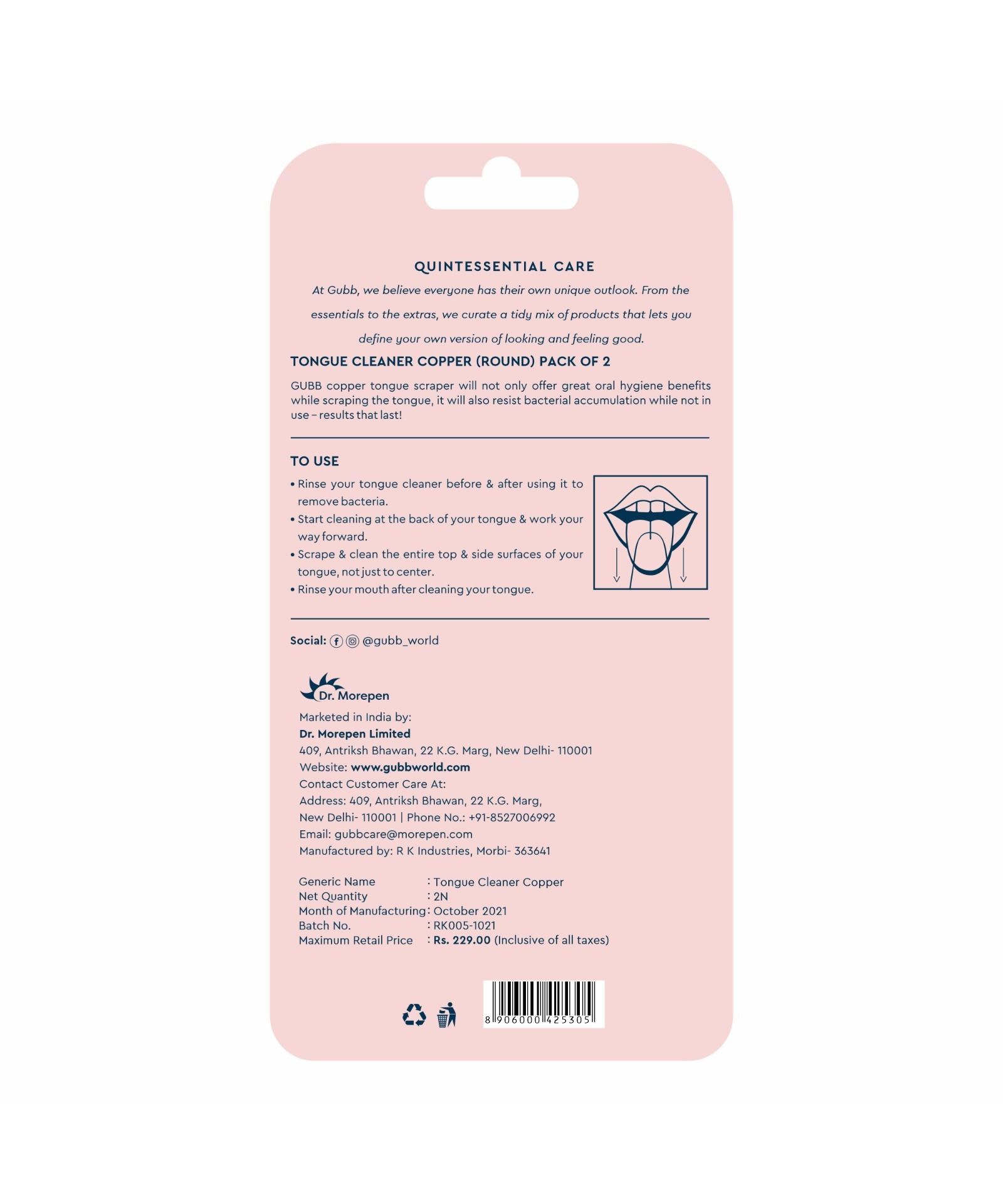 Say goodbye to bad breath with the GUBB Tongue Cleaner. This cleaner helps remove bacteria from your tongue, and its ergonomic design allows you to reach the very back of your tongue. Suitable for adults and kids, this tongue cleaner comes in Copper.