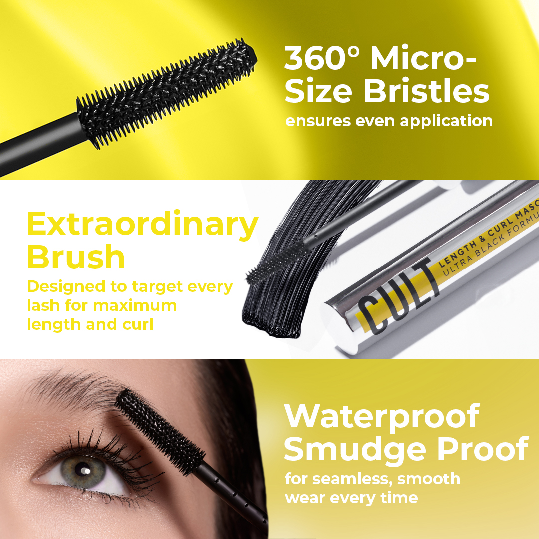 The flexible convenient brush ensures ultimate length and super curl. Gives a stunning wide-eyed look. A small silicone brush allows you to coats lashes from root to tip and delivers a long-wearing effect.