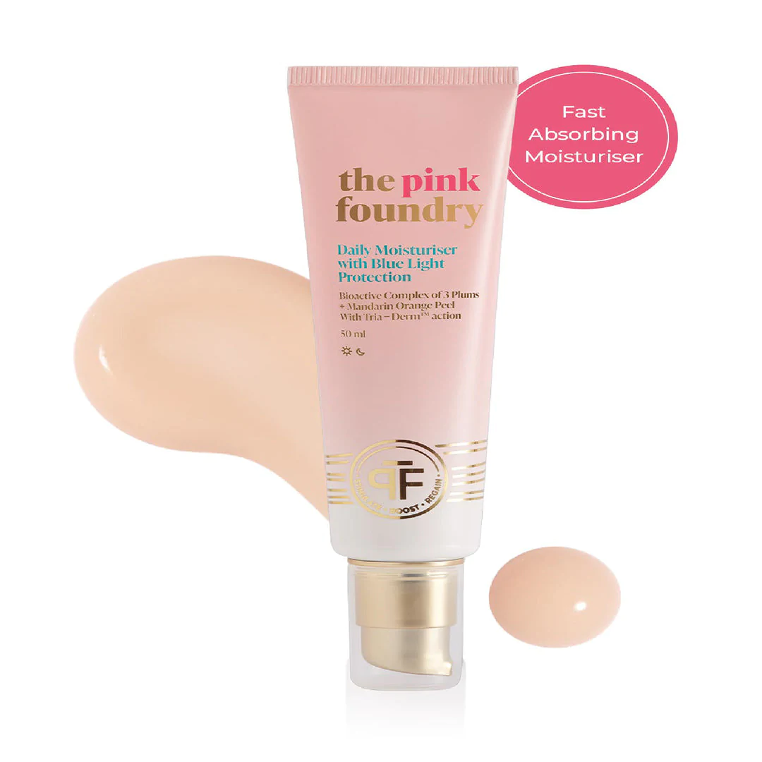 Introducing The Pink Foundrys first ever indoor defense daily moisturiser. Aimed to unleash the skins innate power of hydration and to shield it from the harmful effects of the digital blue light. It strengthens your skins surface, slows down early signs of ageing, making your skin nourished, healthy and plump. Aids skin to regain its original smooth luminous finish.