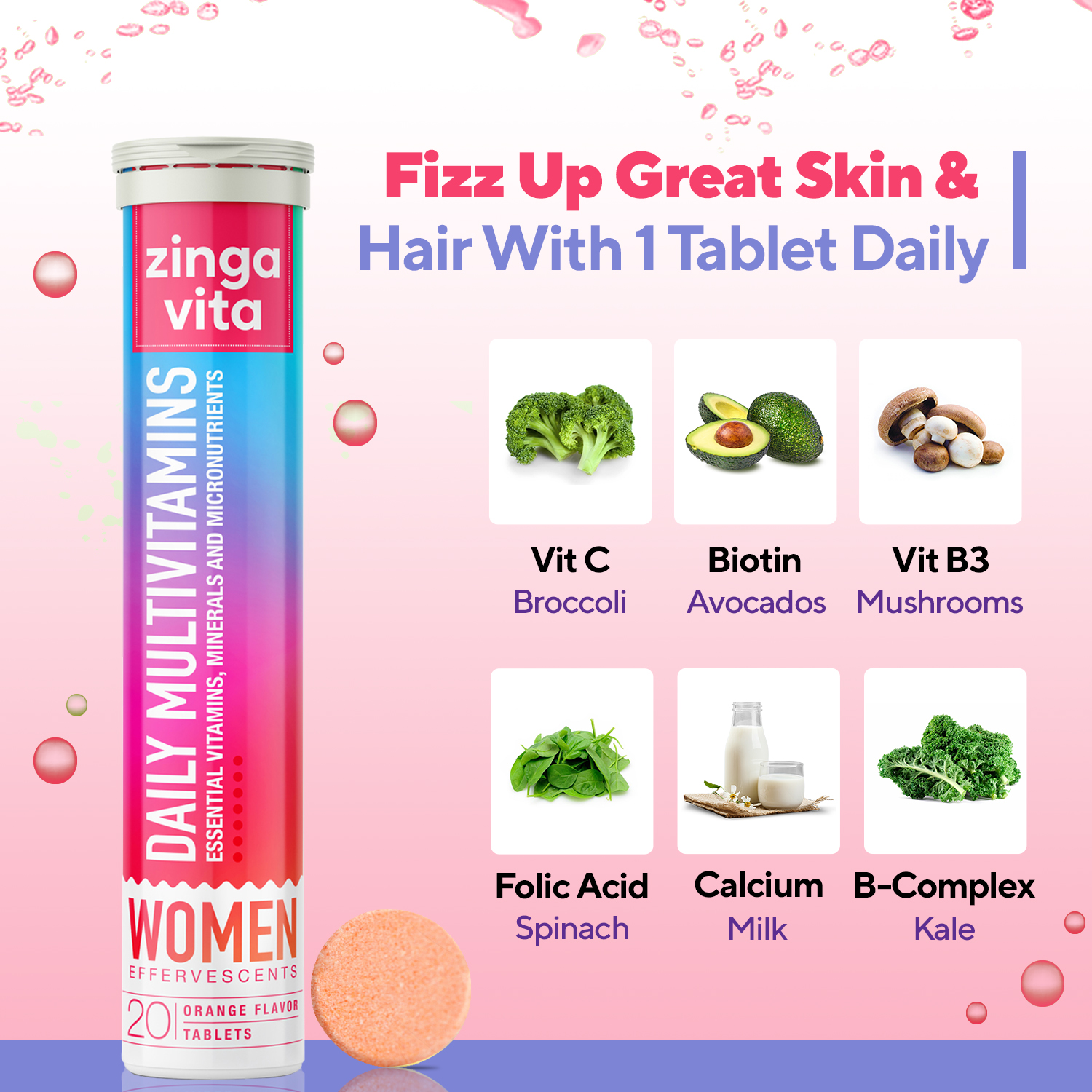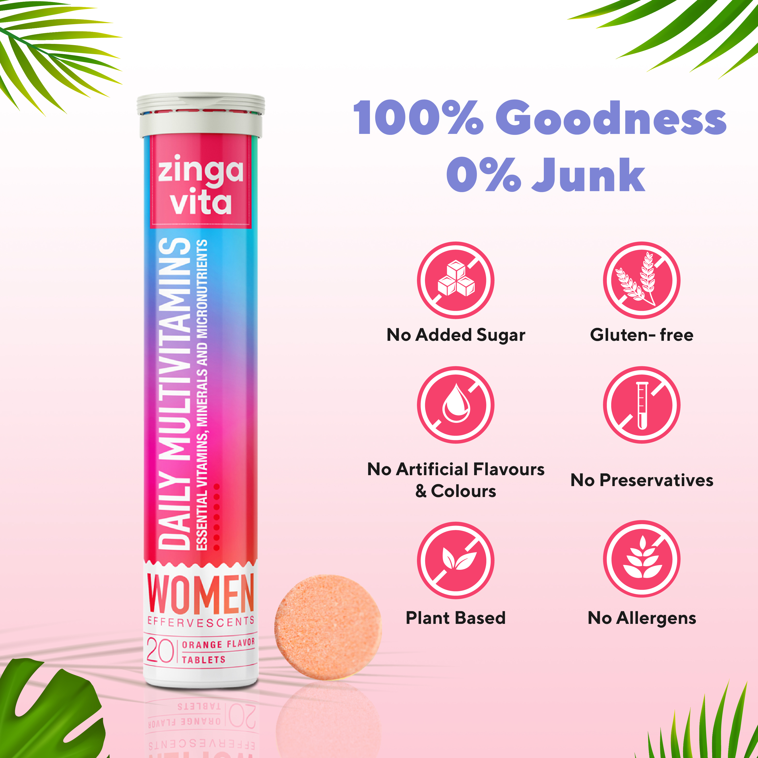 Formulated For Superwomen: Chores, Careers, Family And Life Itself. So Much To Juggle That You Always End Up Putting Yourself Last. So Make Your Wellness A Daily Habit With Zingavita Daily Multivitamins Fizzy Tabs. After All, If YouRe Going To Conquer The World Ladies, YouRe Going To Need The Zing For It