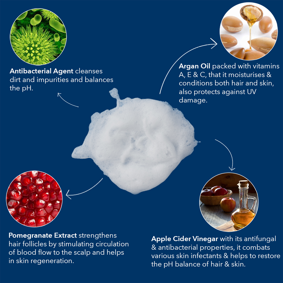 This 2-in1 sulphate-free formula works beautifully to leave your hair & body thoroughly cleaned and renewed at the same time. This head-to-toe solution is good for all skin & hair type and scalp concerns. The gentle surfactants used help to cleanse without stripping away the natural oils of the skin by preserving the skin's hydrolipidic film, leaving behind a soft, smooth texture and fully cleansed hair.