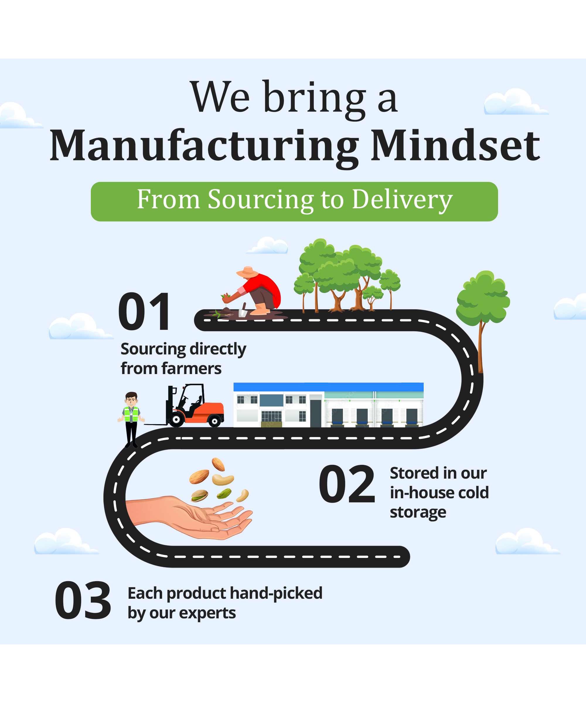 Premium seeds sourced directly from farms; Stored in our in-house cold storage to keep them fresh; Hand sorted by experts to ensure only select ones reach your plate