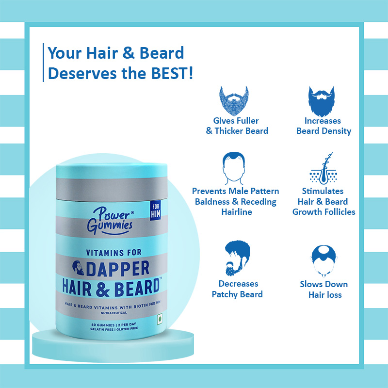 Dapper hair and beard gummies are formulated with numerous hair and beard growth vitamins that penetrate into the hair follicle roots, fix and protect the lethargic hair follicles, work on nutrition retention, and speed up facial hair growth, so you don’t have to make a run for any other beard growth supplements.