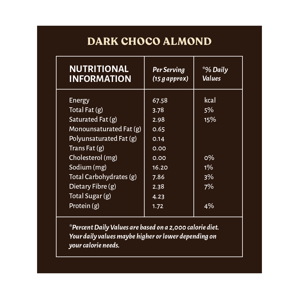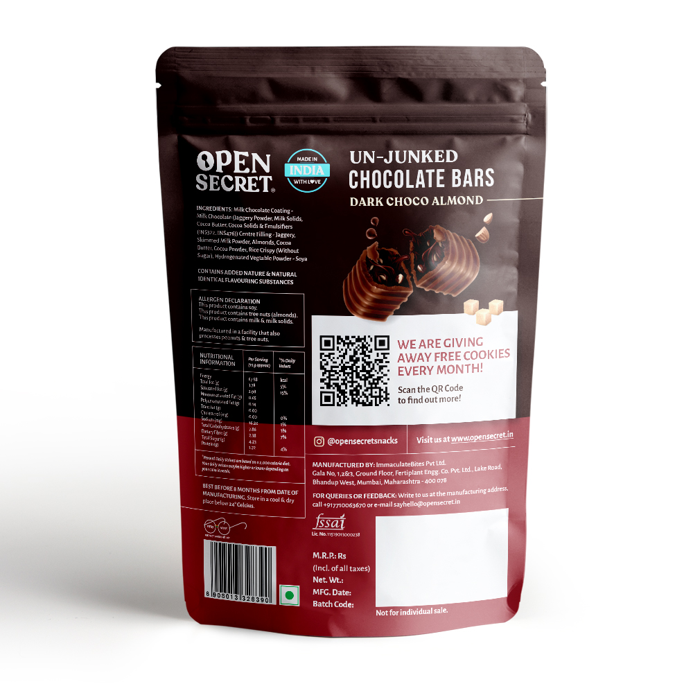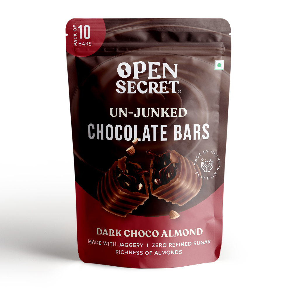 Whats your favorite kind of chocolate? Ours is the rich, dark kind that melts in your mouth with a strong Cocoa-bitter & hints of Almond-crunch! In a nutshell, the stuff of your dreams! So here you go your delicious serving of bliss, minus the serving of guilt! 1 box contains a pack of 10 chocolate bars.