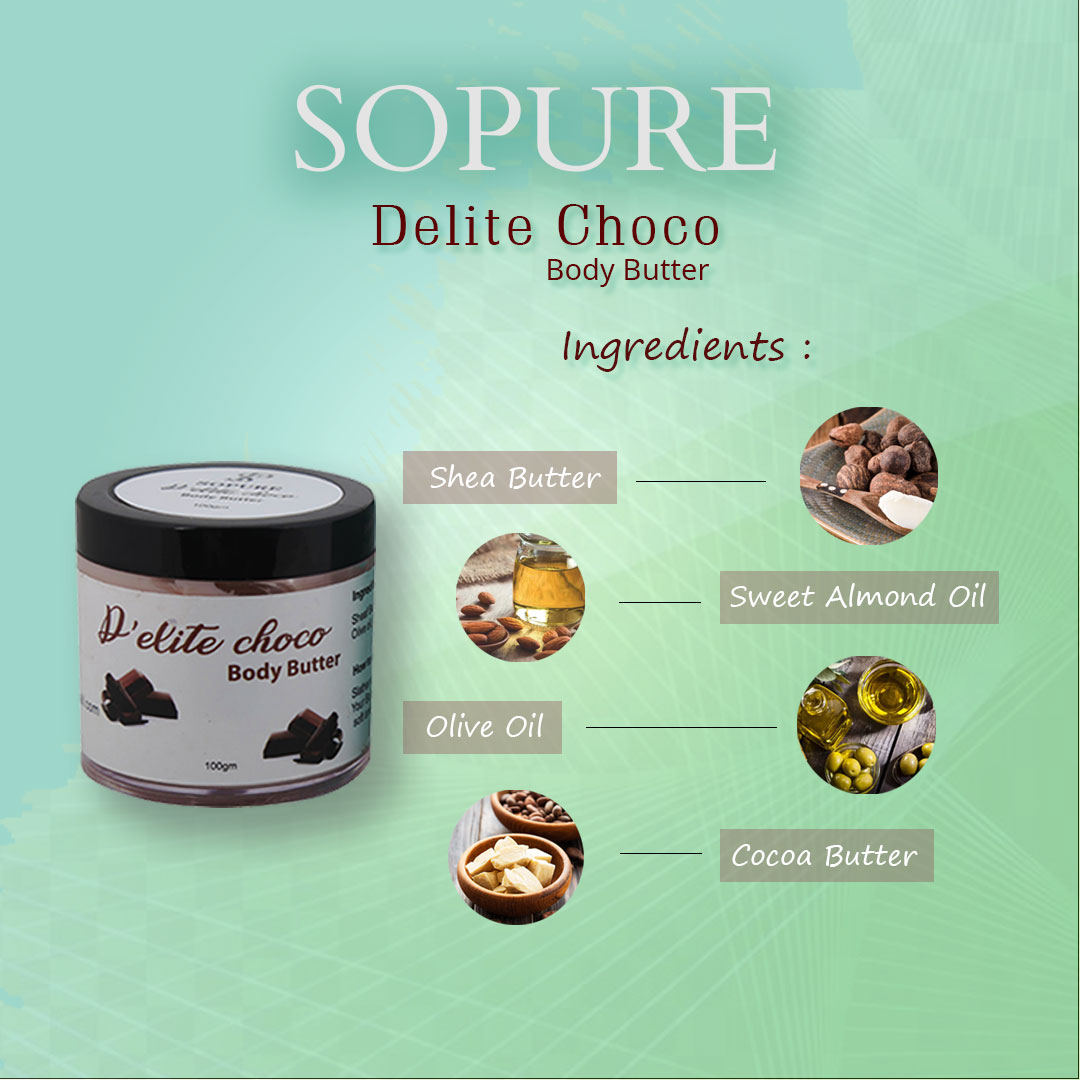 Pamper your skin with Delight Choco Body Butter. Its non-greasy, quick absorption formulation gives long lasting moisturization and leaves your skin smooth and supple. This body butter gives deep hydration and suits all skin types.