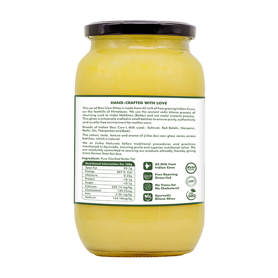 A2 Desi Cow Ghee is made from the rich and nutritious milk of Desi cow breeds. The milk used is sourced from rural Gwala communities in Himachal Pradesh. Traditional Bilona Ghee is made from whole curds rather than malai or cream.