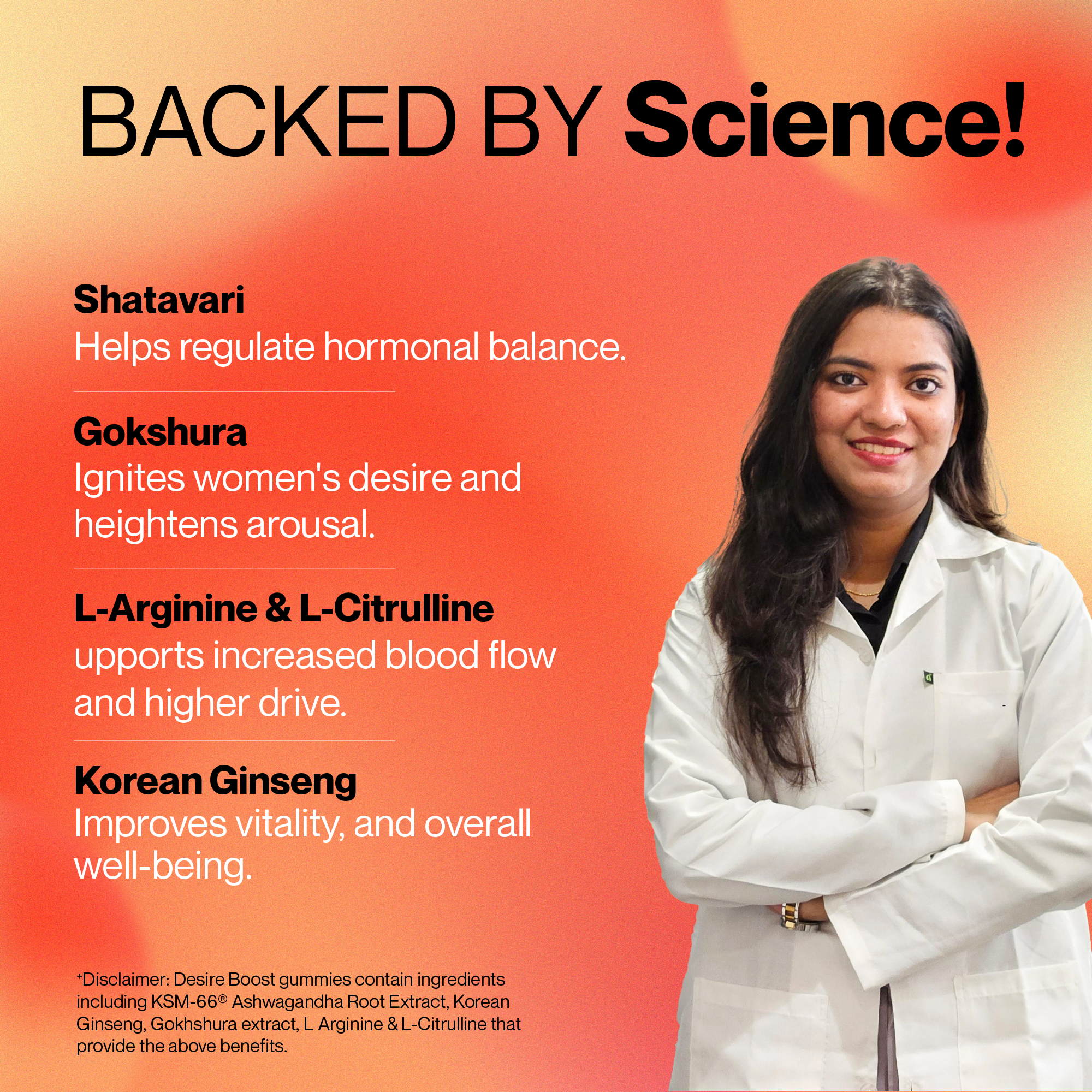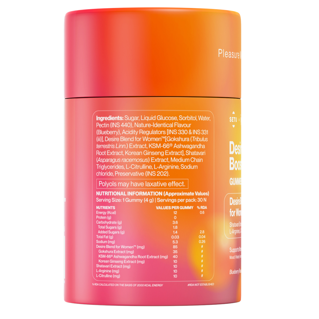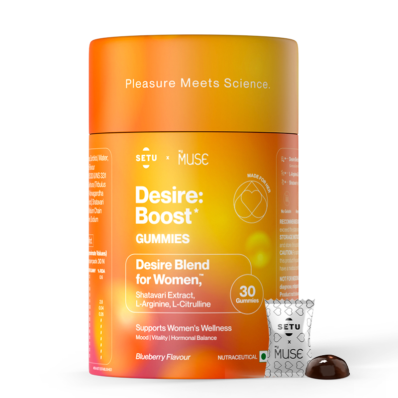 Setu Nutrition X MyMuse Desire: Boost Gummies for womens wellness is enriched with a blend of 6+ clinically-proven ingredients to tackle modern-day challenges that affect desire.