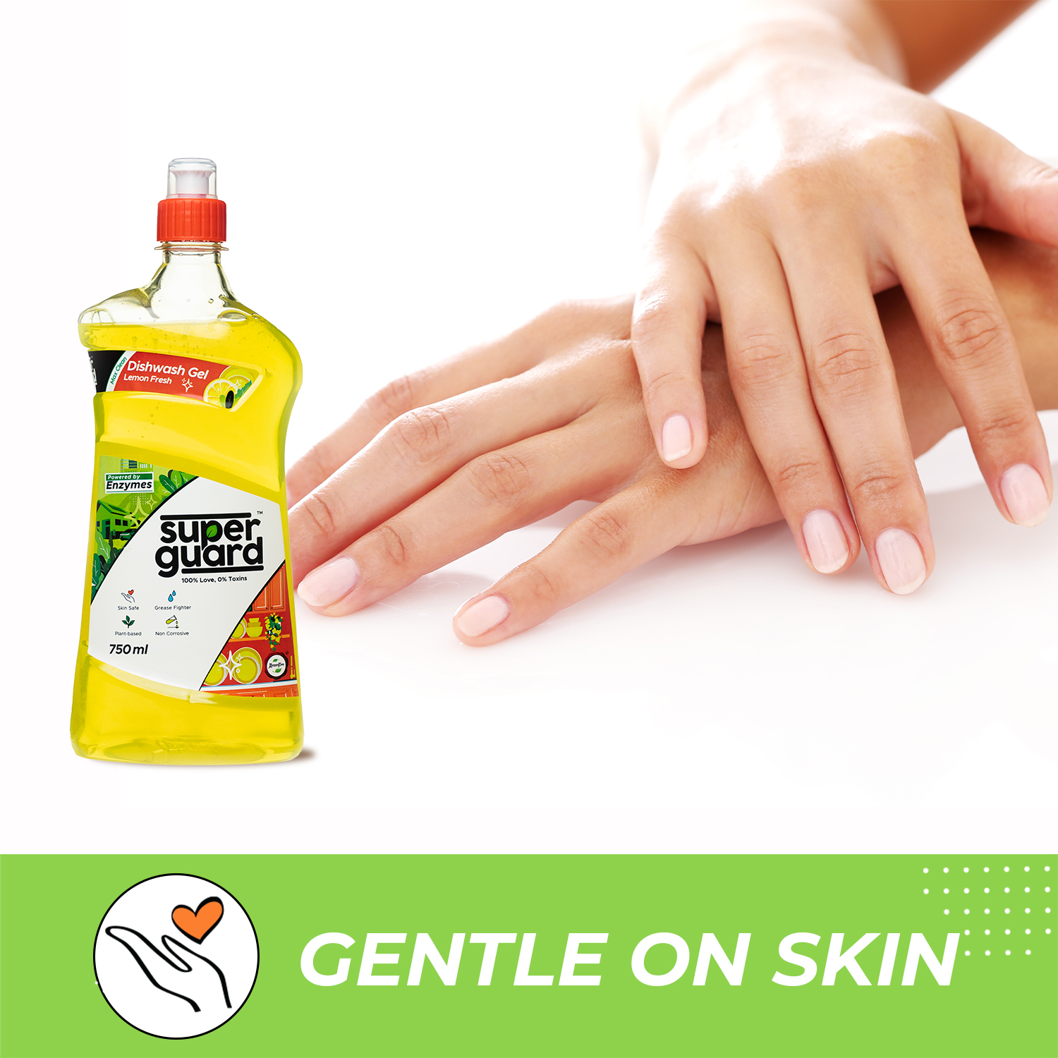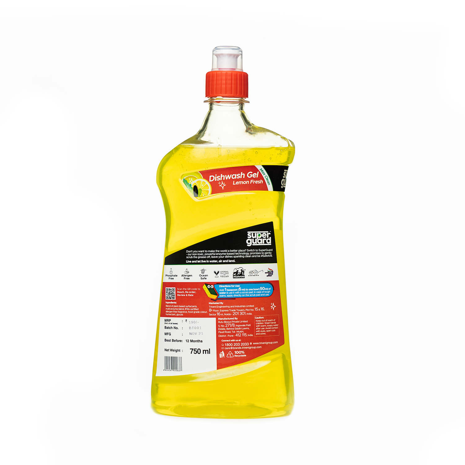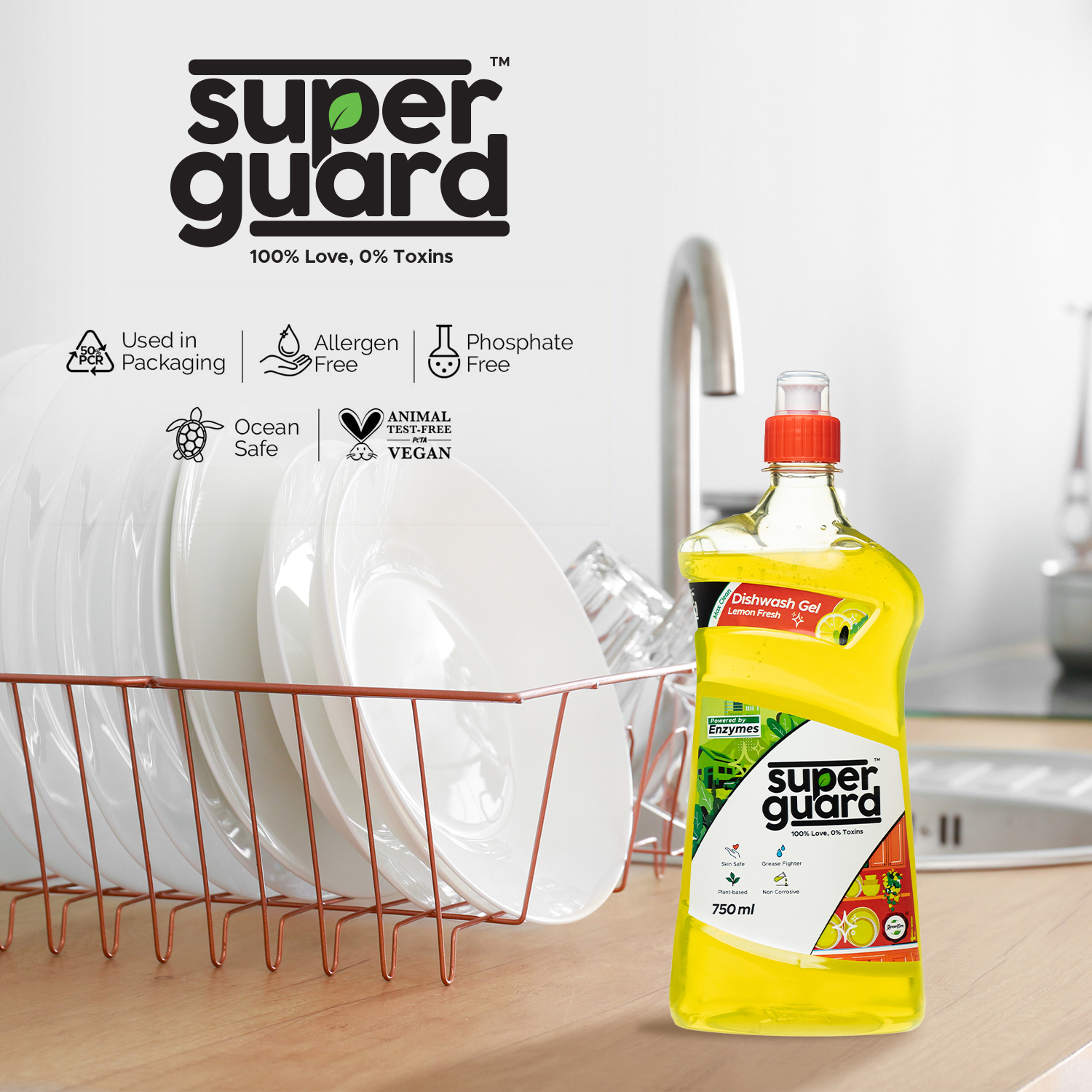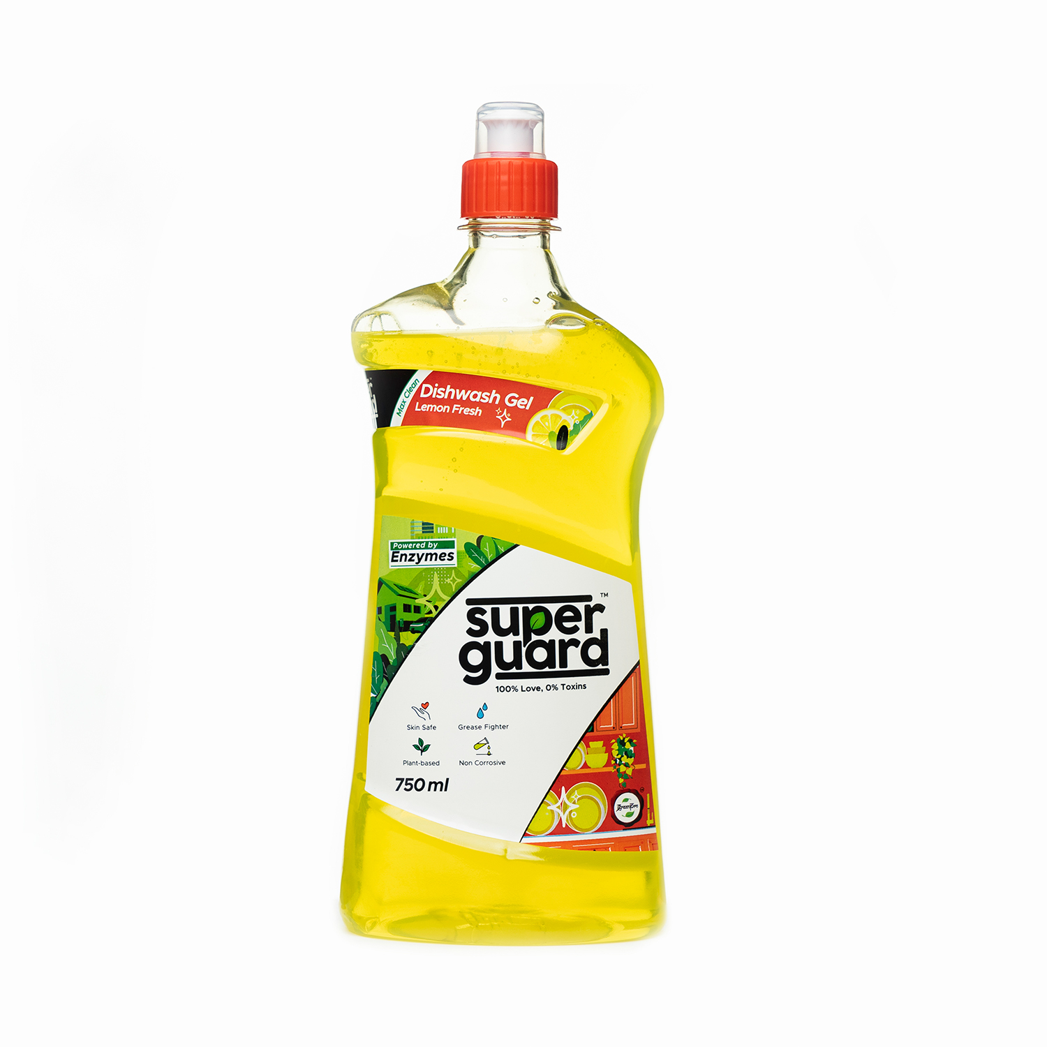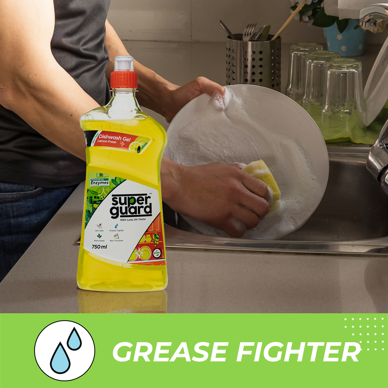 SUPERGUARD Dishwash Gel is the best grease cleaner for kitchen utensils. It removes the toughest of stains including grease in just one wash. Dishwash Gel with its powerful non-toxic enzyme-based formula promises to gently scrub the grease off, leave your dishes sparkling clean and be #Safe4All - your kids, pets, you and the planet.