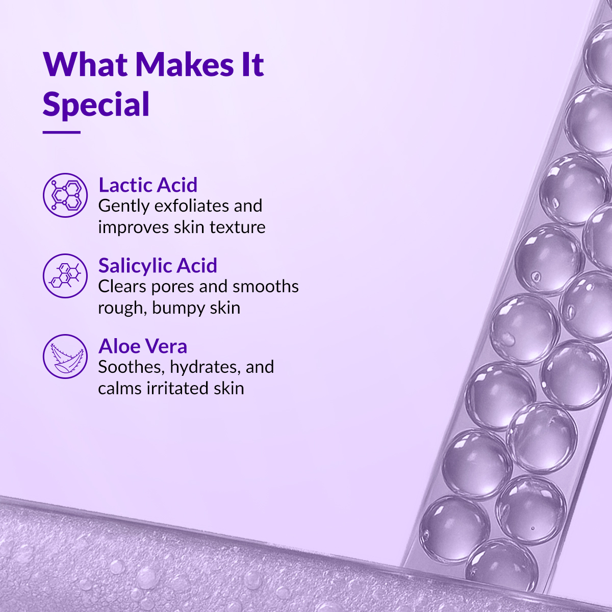 - Lactic Acid,Salicylic Acid,Aloe Vera