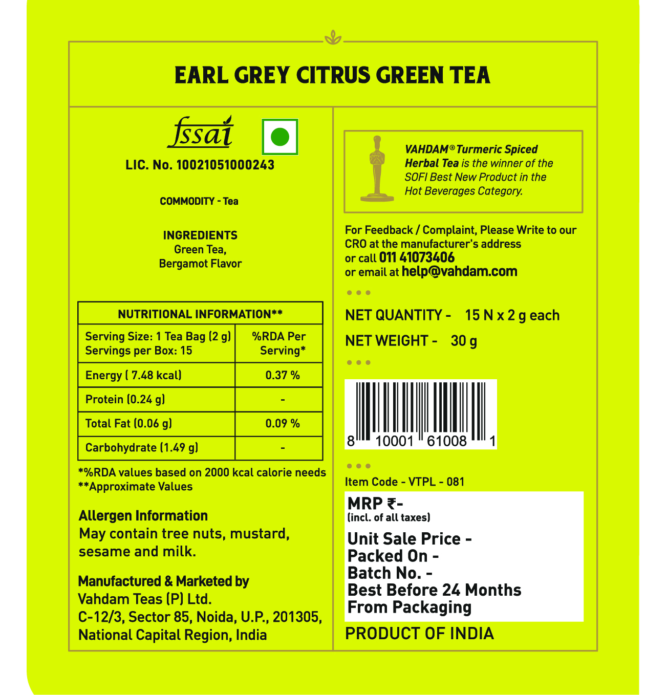 This product comes with a blend of the best green teas. It brings together a mix of green teas with natural bergamot oil. Discover a smooth golden liquor with zesty lime and orange, and the signature undertones of fresh greens. It has a sweet and appetizing finish.
