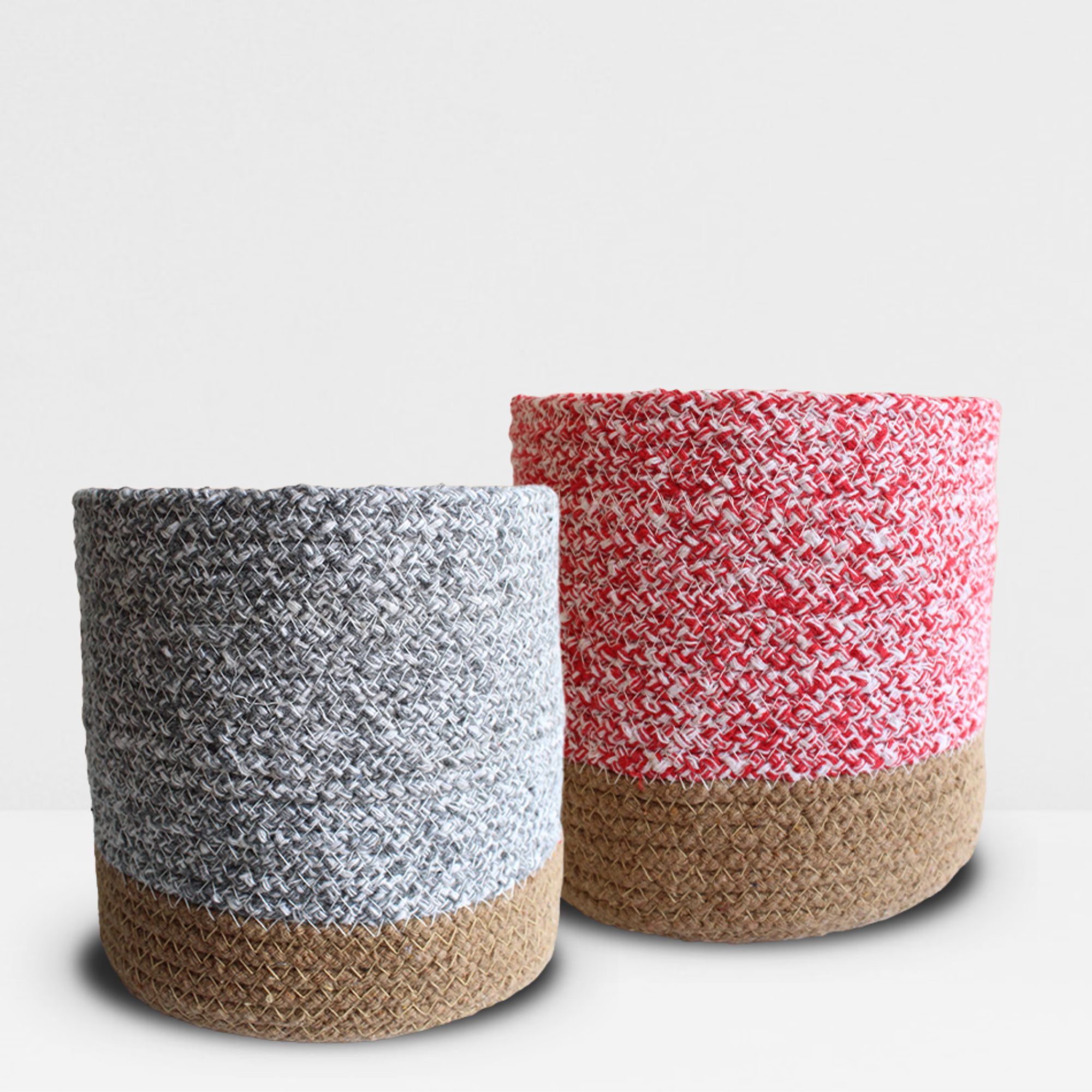 An eco-friendly planters pair made from cotton and are beautiful ones. They come in Rose Pink & White and Pebble Grey & White color with a Jute Brown colored base. The planters are approximately 6 inches in diameter. Greenkin's cotton planters are made in India and handcrafted by skilled artisans of our country. They are washable and repurposable. They make a beautiful & modern addition to a space.