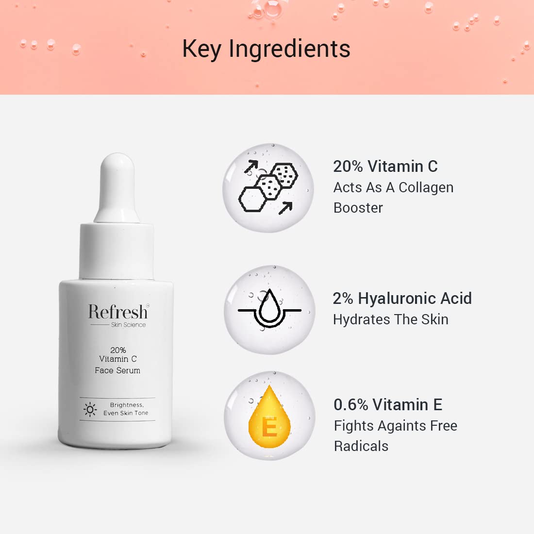 Being India's first 20% Vitamin C serum to help brighten your complexion and fight against free radical damage! A glow-boosting serum to reduce sun damage and dark spots.