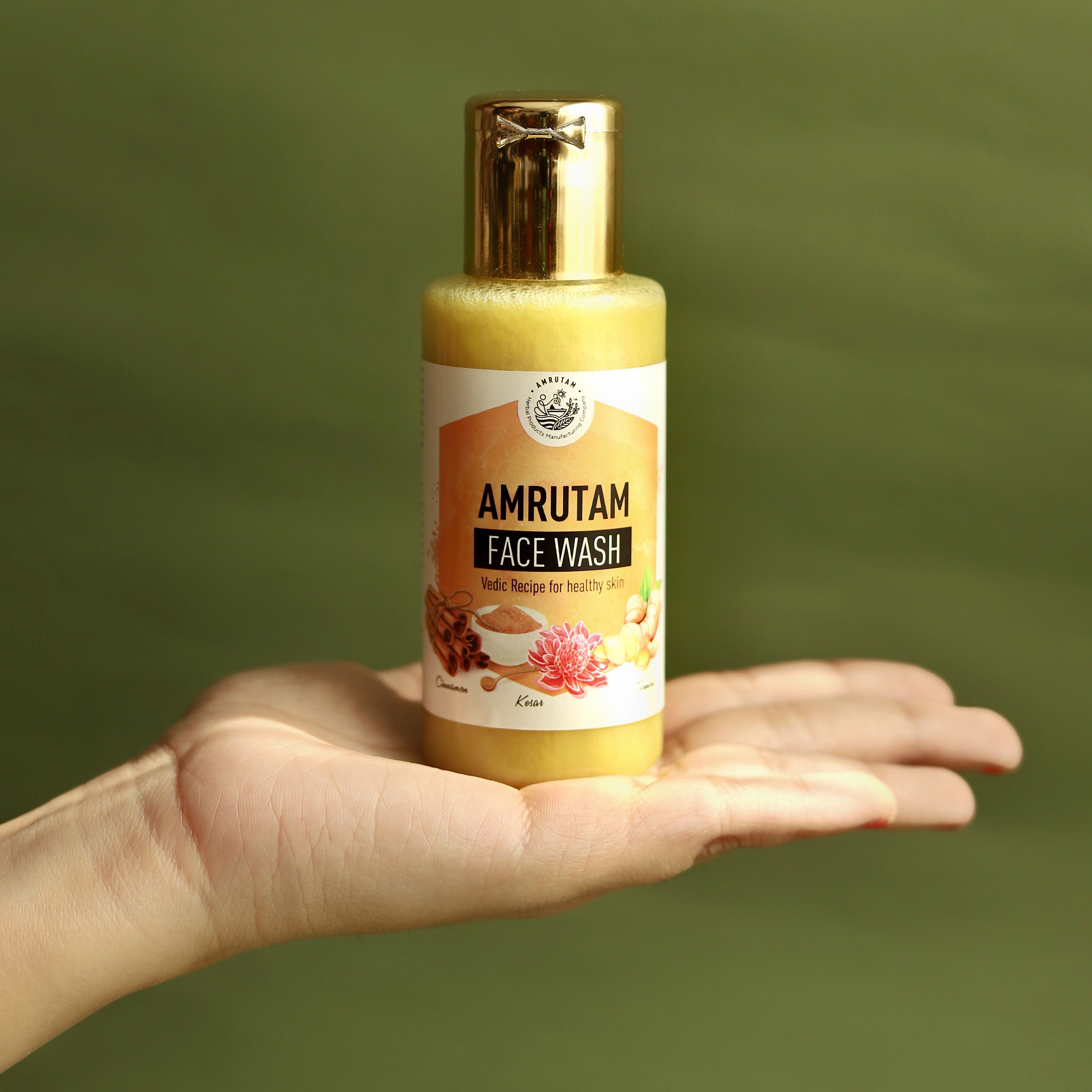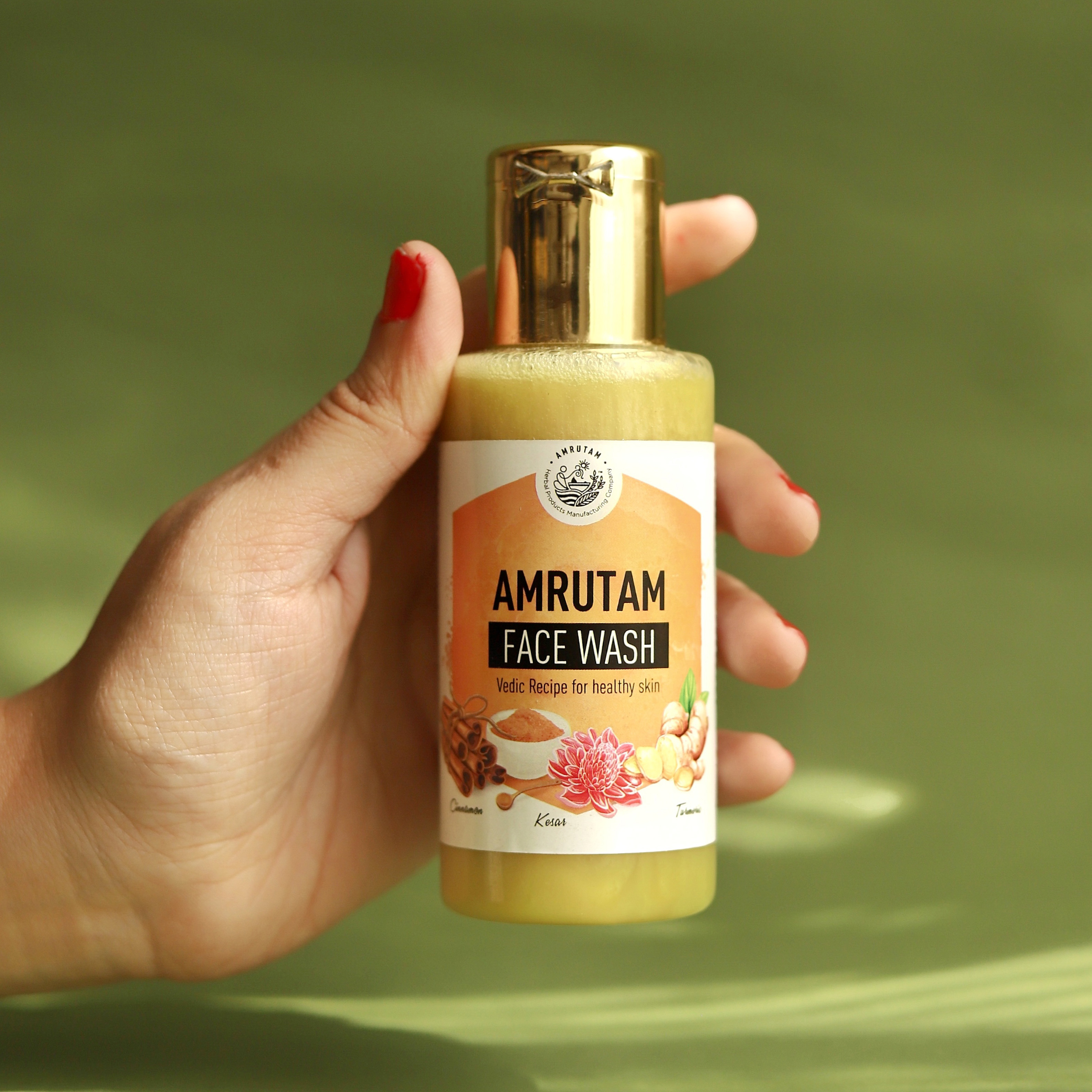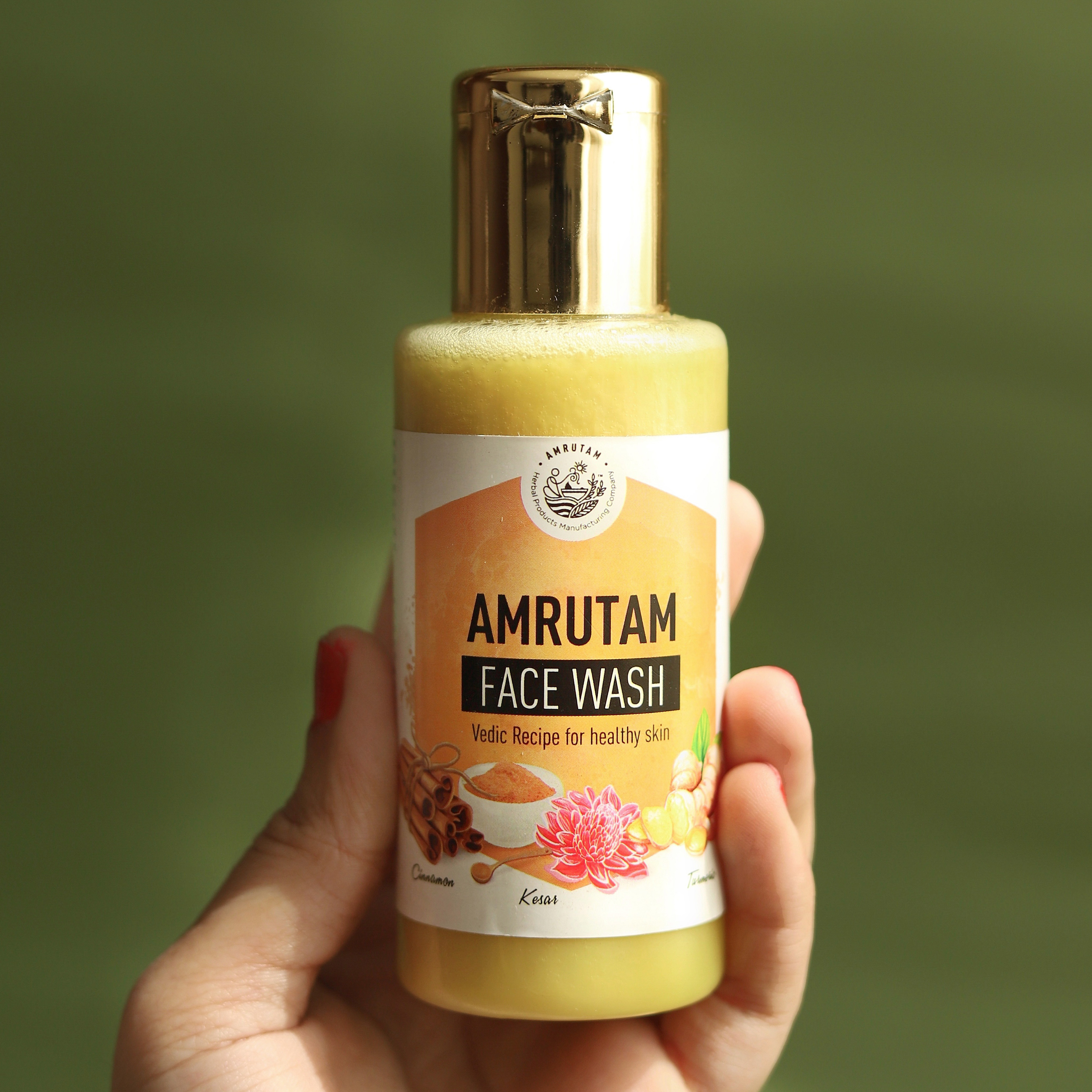 Amrutam Face Wash cleanses, repairs, and restores the health of the skin. It harnesses the goodness of ingredients like cinnamon to clear acne and fade spots, while the goodness of the other natural ingredients removes dirt from deep within your pores.