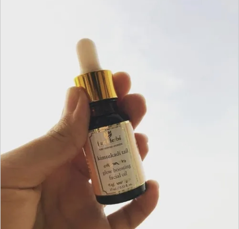 This product is a blend of seventeen precious herbs. These naturally occurring glow boosters along with several other plants have been celebrated since antiquity for having a startling effect on pigmented, dull and ageing skin. We cook these in cold-pressed sesame oil according to tail-pak vidhi (the traditional ayurvedic way of oil making) to prepare our signature version of this classical ayurvedic formulation.