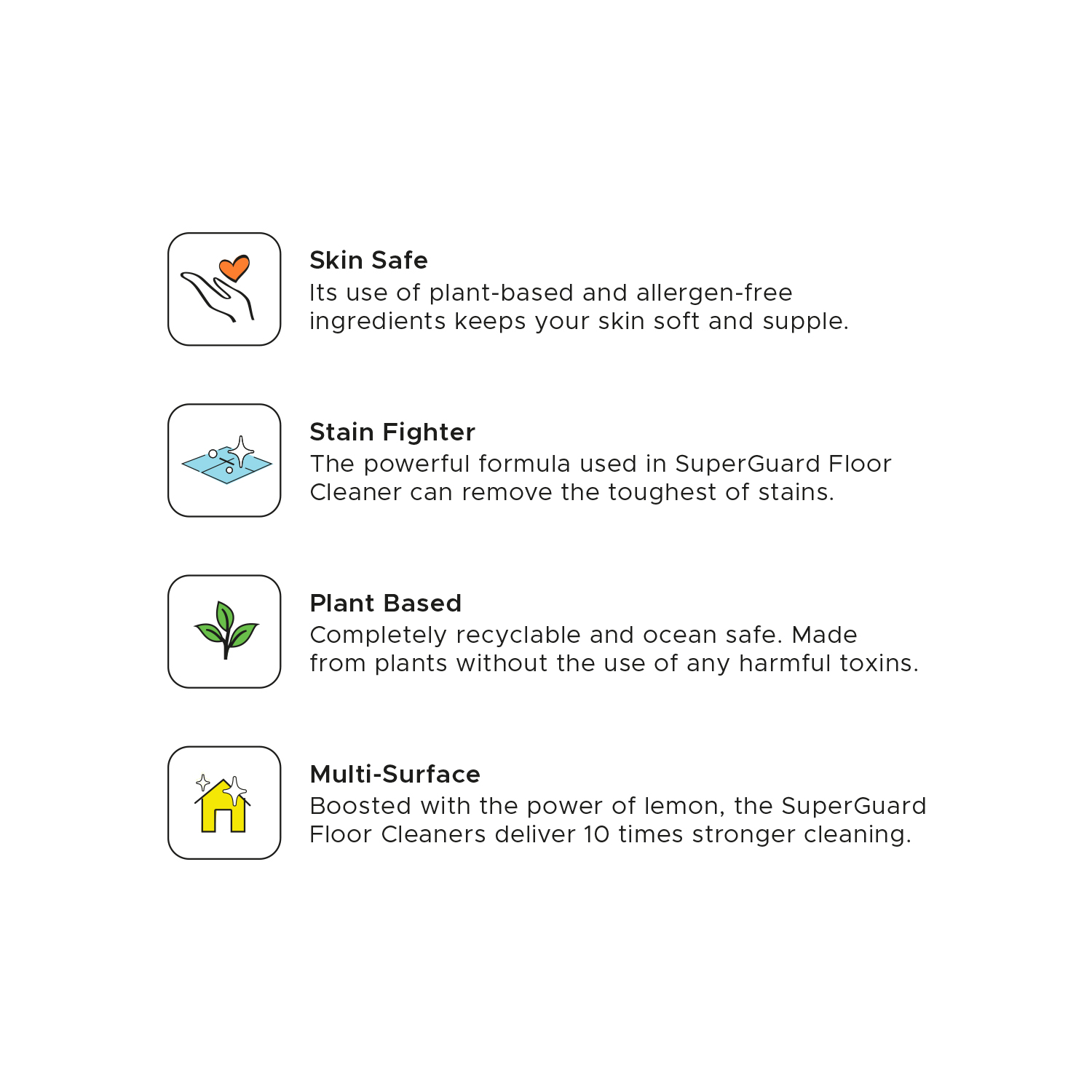 CLEANS ACROSS ALL TYPES OF SURFACES - Superguard Floor Cleaner liquids multipurpose formula makes sure that it can be used on various types of flooring, ranging from marbles to tiles.