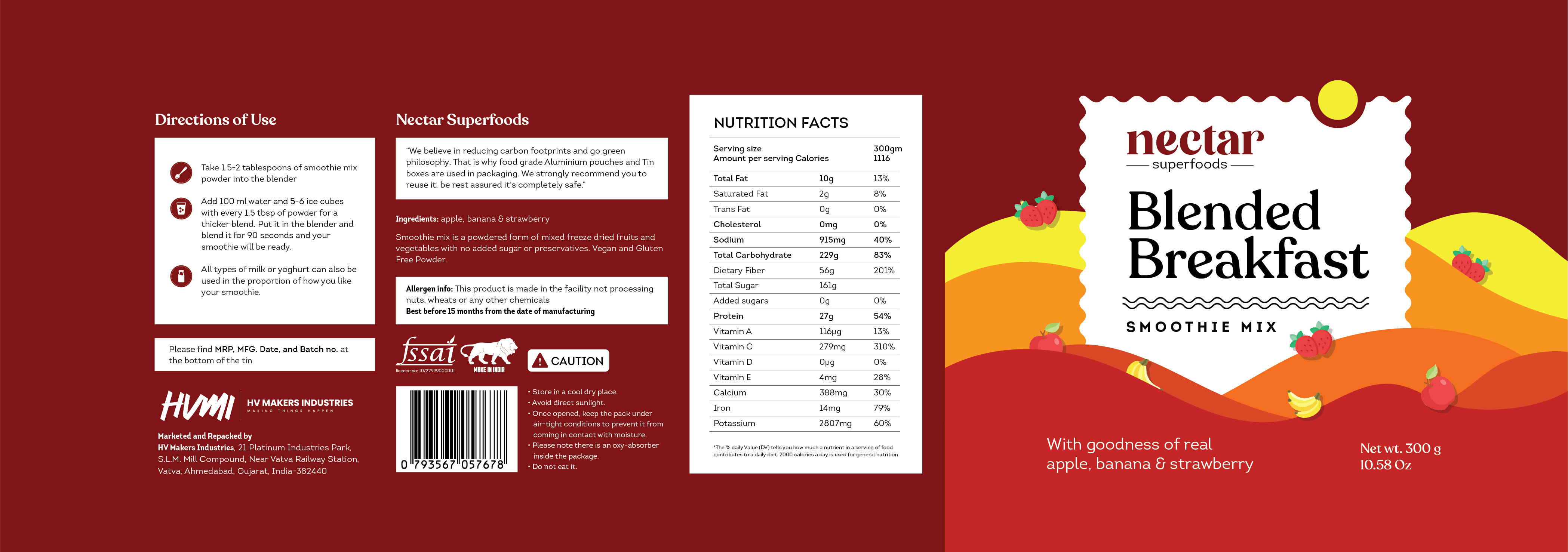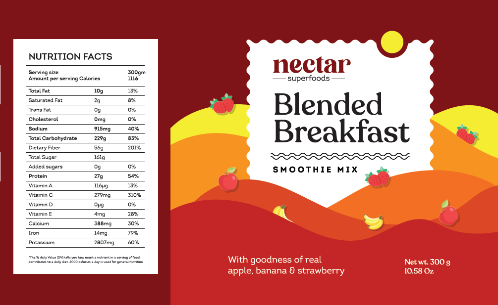 Nectar Superfoods Freeze Dried Smoothie Mixes are just real dried fruit powder only. No sugar or artificial sweeteners added. It just has the natural sweetness of the fruit. Powders are made from dried fruits using state of the art freeze drying technology.