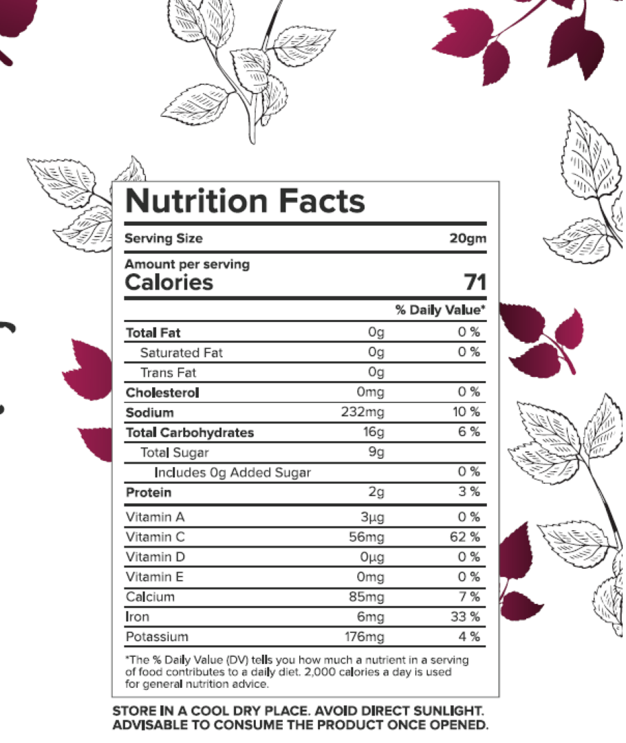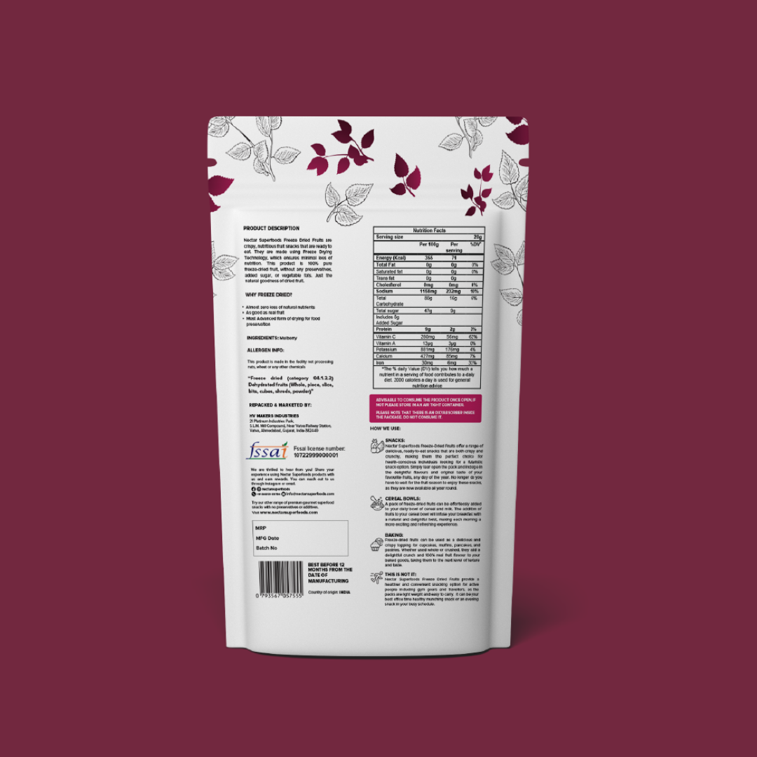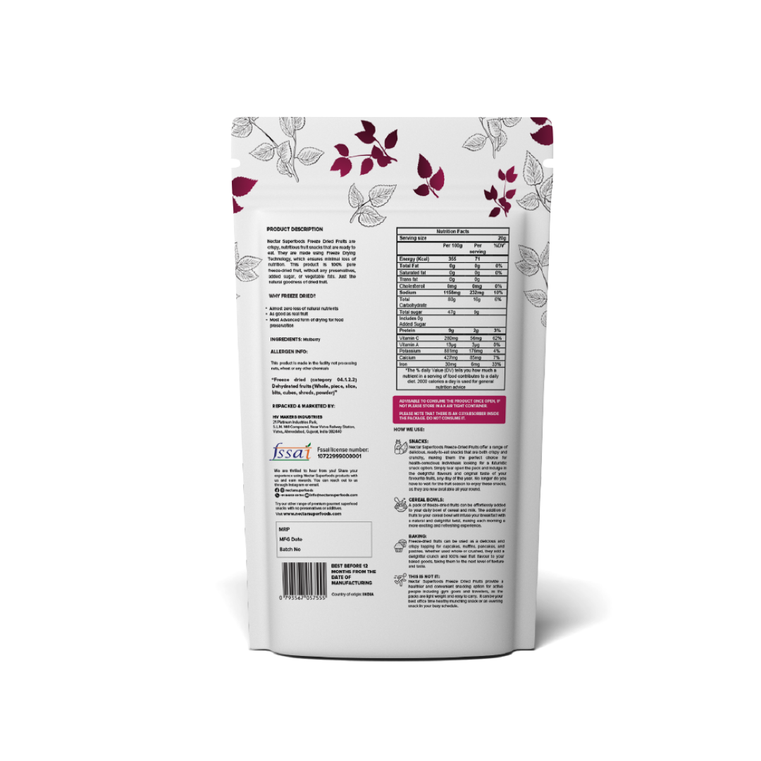No Loss of Nutrition : As freeze drying saves almost 90-98%* of nutrients of the raw fruit used the need for nutrition is taken care of.